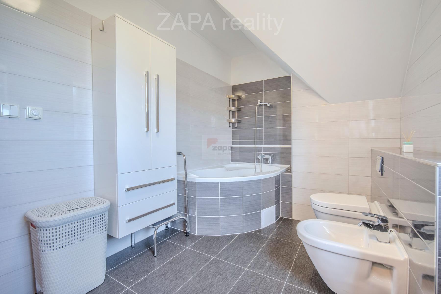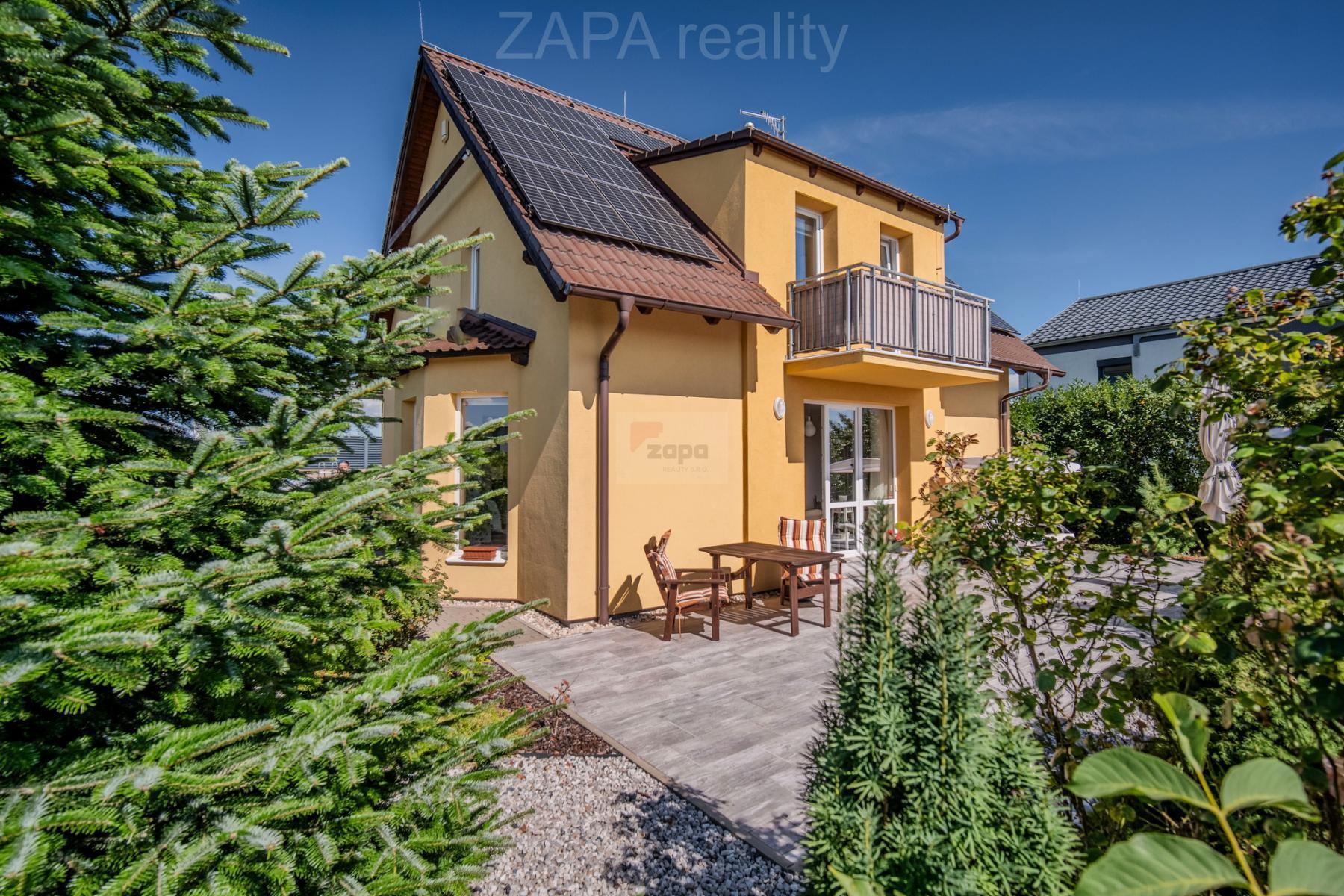 Prodej moderního samostatného RD 5+kk s dvougaráží v Přezleticích u Prahy - velikost: 218 m2, pozemek 620 m2 - rok kolaudace 2017, jihozápadní orientace Klíčové vlastnosti: - 5+kk s terasou, 2x šatna, 2x koupelna, sauna, technická místnost - Dvougaráž 30 m s nabíječkou pro e-auto + 2-3 parkovací stání - Vytápění na elektřinu nebo plyn, solární panely, krb s akumulační vložkou - Zahrada 494 m s vzrostlou zelení, závlahovým systémem a bazénem s protiproudem - Jihozápadní orientace a nádherný výhled do okolí - Půda 9 m jako úložný prostor nebo pro případnou vestavbu - Krásný výhled do okolí, na kopci- nehrozí problémy se spodní nebo dešťovou vodou - Energetická náročnost: Třída B Dispozice domu: -Přízemí (104 m): Obývací pokoj s kuchyňským koutem (46,5 m) a přímým vstupem na terasu (53 m2) a zahradu. Koupelna s WC a saunou, šatna, úložný prostor, garáž s dílnou. -1. patro (114 m): 4 ložnice, balkon, šatna, koupelna (vana), WC, přístup na půdu. Vybavení: -Moderní kuchyňská linka se spotřebiči (lednice, myčka, trouba, varná deska) -Optický kabel, zabezpečovací systém s kamerami, videotelefon -Kvalitní podlahy (vinyl/dlažba), dálkové ovládání garážových i vjezdových vrat Zahrada: -Terasovitá zahrada s okrasnými i ovocnými dřevinami, workoutové hřiště, bazén s protiproudem -Zavlažovací systém napojený na dešťovou nádrž Doprava: -Výborná dostupnost do centra Prahy (15 minut na metro Letňany, 30 minut autem do centra), autobusová zastávka 3min chůzí-na metro 20min Okolí -V pěší dostupnosti: základní škola, školka, supermarkety, restaurace, zdravotní středisko, kavárna, kulturní akce, cyklostezky, lesoparky a sportoviště (veřejné kurty, workout, dětské hřiště), Ctěnický zámek s parkem a jízdárnou, golfové hřiště Praque City Golf Vinoř Cena zahrnuje provizi, právní servis a daně. Financování hypotečním úvěrem možné, rádi pomůžeme. Pro více informací a prohlídky nás kontaktujte!