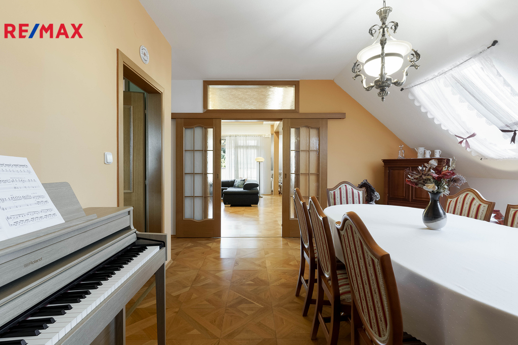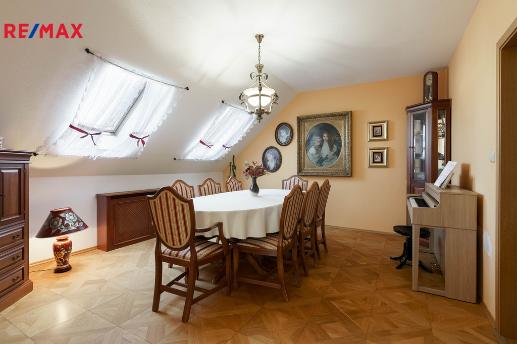 Reprezentativní rodinné sídlo s penzionem, Wellness a stavebním pozemkem. Spojení noblesního bydlení a investiční příležitosti na jednom místě. Představte si domov, který nabízí nejen výjimečný prostor pro život, ale i možnost podnikání a dalšího rozvoje. Právě takový dům vám nyní nabízíme – nádherně udržované rodinné sídlo s krásnou atmosférou, nacházející se v klidném a soukromém rezidenčním areálu v Příbrami. DOMINANTY NEMOVITOSTI: - velkorysý obývací prostor s krbem, vysokými stropy a vstupem na terasu - kuchyň, samostatná jídelna, galerie s výhledem do obývacího pokoje - stylové dřevěné prvky, parkety, lustry a elegantní detaily v celém interiéru - Wellness zóna s vnitřním bazénem, saunou a sprchou - až 3 ložnice v hlavní části domu, každá s dostatkem prostoru a soukromí. - hlavní koupelna s vanou i sprchou, další koupelna en suite SOUČÁSTÍ DOMU JE TAKÉ PENZION, ideální pro ubytování hostů nebo dlouhodobé pronájmy – každý pokoj má vlastní koupelnu. K dispozici je také místnost na přípravu jídla s myčkou a ledničkou. Zázemí pro podnikání či koníčky: technické prostory, dílny, sklady, šatny a WC – samostatná provozní část domu. ZAHRADA, KTERÁ MÁ DUŠI: - okrasná, pečlivě udržovaná, s množstvím zeleně a vzrostlých stromů - venkovní posezení, zahradní domek, kopaná studna - hloubka 33m. Zahradu velmi rády využijí také děti, pro které se nabízí pískoviště, houpačky a dětský domeček. Součástí prodeje je také pozemek, který se nachází v horní části zahrady, a je připraven pro výstavbu dalšího rodinného domu. K domu patří také dlážděná přístupová komunikace vedoucí od hlavní brány až k RD. Tato nemovitost je ideální volbou pro vícegenerační bydlení, velkou rodinu, milovníky prostoru a pohodlí, nebo investory hledající kombinaci stabilního výnosu a životního stylu. Lokalita poskytuje naprosté soukromí, bezpečné prostředí a skvělou dostupnost služeb. Tento dům je víc než jen místo k bydlení – je to životní styl s přesahem, který vás okouzlí na první pohled.
