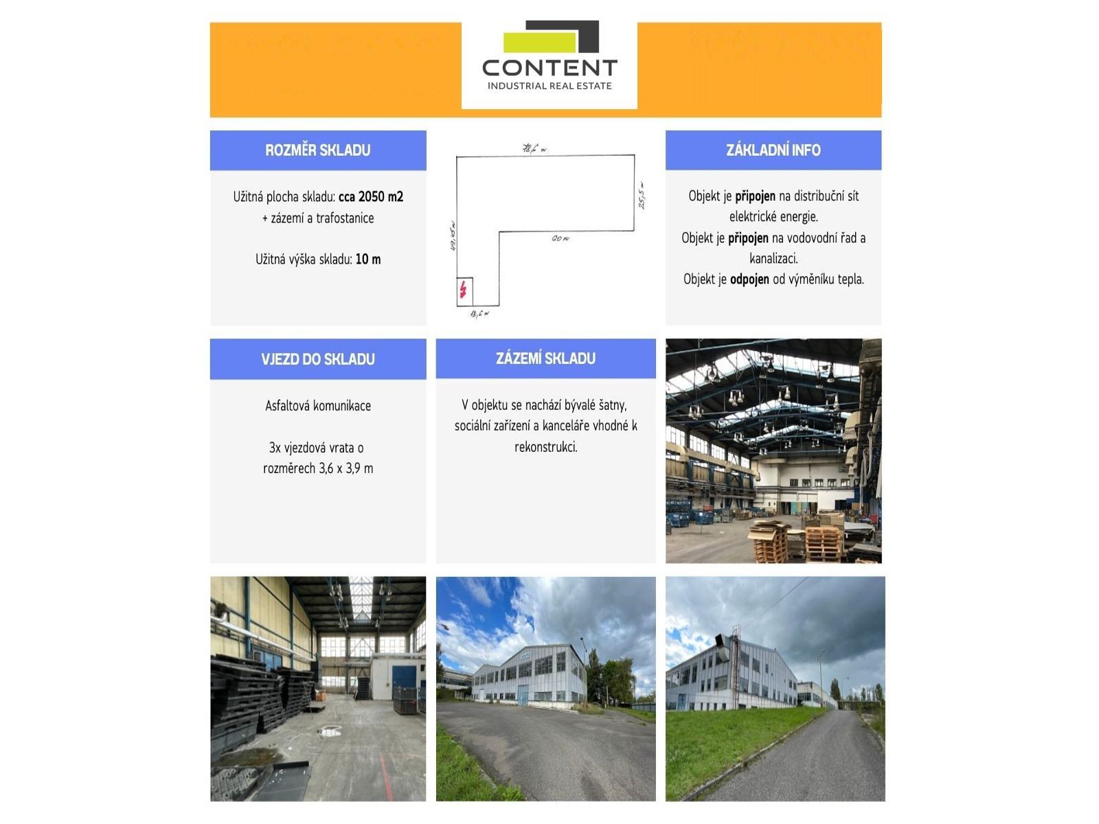 Pronájem skladu, výrobních prostor Příbram. V zastoupení majitele a bez provize nabízíme skladové nebo výrobní prostory o velikosti 2050 m² v průmyslové zóně, s rychlým napojením na dálnici D4. - k dispozici ihned - nevytápěné prostory - 3x vjezdová vrata o rozměrech 3,6 x 3,9 - elektrická energie, voda, kanalizace - světlá výška stropu 10 m - zázemí, trafostanice - úpravy a rekonstrukce dle dohody - parkování, zastávka MHD nedaleko Cena nájmu 110,-Kč/m²/měsíc. Pro více informací nás kontaktujte, rádi Vám zajistíme prohlídku nemovitosti.