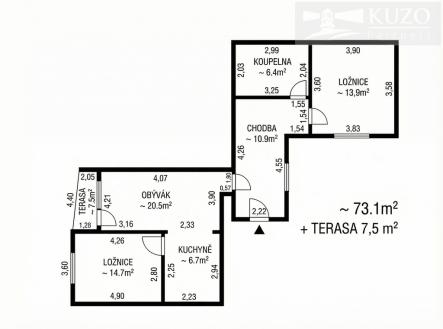 Pronájem světlého bytu 3+kk s terasou v historickém centru Příbrami, ul. Střelecká