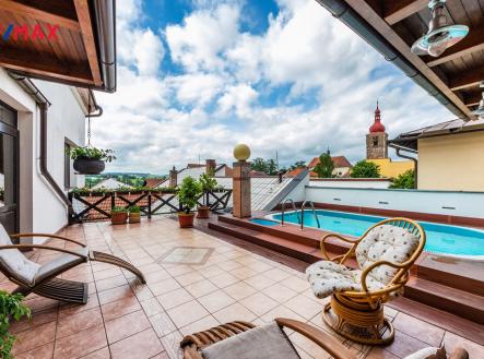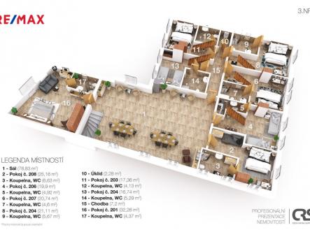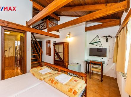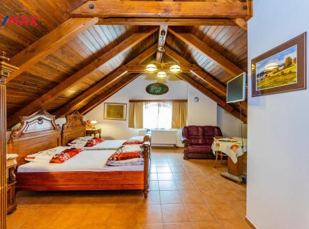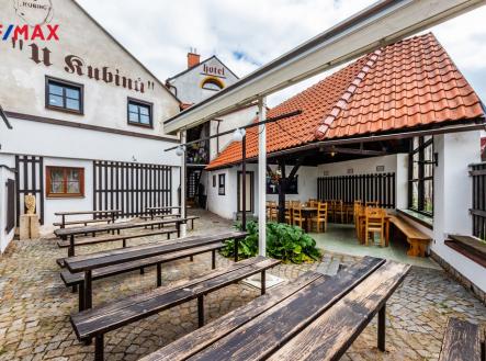 Dovoluji si Vám nabídnout prodej zavedeného a vyhlášeného penzionu "U Kubínů" v Přibyslavi. Základní kámen ve 14.století, restaurace je domě dle dohledaných dokumentů od roku 1823. Penzion disponuje užitnou plochou 960m2, zahrnuje 15 pokojů s koupelnami, restaurací s kuchyní, zahradní restaurací se samostatným výčepem, dostatečným zázemím (sklady, sklepy na víno i pivo) + garáží. Dále dvěma byty 2+1 a 3+1, ke kterým patří zimní zateplená zahrada (pavlač) a také teresa o výměře 67m2 s bazénem s technologií na slanou vodu. K penzionu náleži pozemek o celkové rozloze 698m2. Dům prošel rekonstrukcí od roku 1993 až po nástavbu v roce 2008 včetně nové kanalizace 2021. Příprava, včetně povolení památkářů, na výtah. Suterén: 3x sklep (pivní pro restauraci, vinný a pro zahrádku s výtahem) + vlastní studna i vodárna + garáž 5x7m s výjezdem na ulici Vyšehrad (střecha z mědi) 1.patro: - restaurace s 65.místy k sezení, barem z dubu. Kuchyně čistá, špinavá + suchý sklad a chladící box. Personální šatna + sklad alkoholu. WC - muži, ženy a pro personál. - zastřešená zahrádka s výčepem pro 30 lidí a volným prostorem pro 50 lidí. Veliká část návštěvníků cyklisti. Nedaleko domu cyklosteska nedávno oceněna jako nejlepší v EU. - na druhé straně průjezdu se nachází první 4 pokoje s vlastním sociálním zařízením + místnost pro technologii bazénu se slanou vodou. 2.patro: byt 3+1, byt 2+1. Obývací pavlač, terasa s bazénem a sklad pro čisté prádlo a dva dvoulůžkové pokoje. 3.patro: luxusní pokoj s baroktním nábytkem, vanou a výhledem do údolí Sazávy. 4x mezonet (1x pro invalidy) 4-5 lůžkový, dvoulůžkový s trezorem na zbraně - ostatní s trezory na peníze, cennosti. Na tomto patře se nachází i sál pro 70 lidí. Podkroví: technická místnost a sklad. Úřady povolena čtyři reklamní místa na příjezdech do Přibyslavi. Turistická sezóna běží i přes zimu (Nové Město na Moravě 30 minut autem). Restaurace používají objednávkový systém ABX Harsys. Majitelé jsou ochotni první měsíce pomoc, zasvětit do provozu, včetně výpomoci v kuchyni. Celková obestavaná hmota objektu je 4500m3