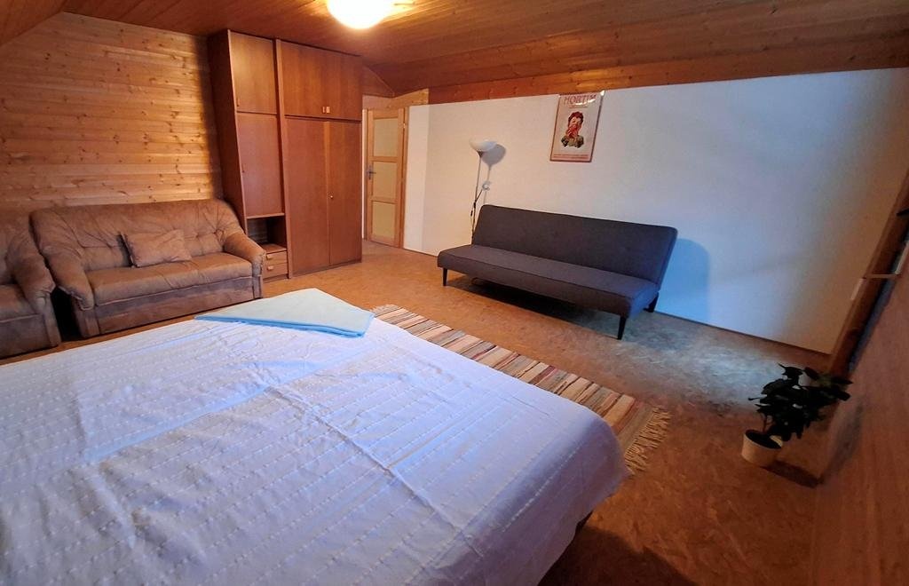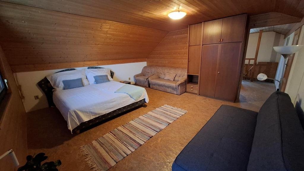 Nabízíme k prodeji samostatně stojící rodinný dům se sedlovou střechou, situovaný uvnitř vlastního pozemku o výměře 760 m2 v obci Přibyslavice. Jedná se o dvoupodlažní rodinný dům s dispozicí 4+1 na půdorysu 100 m2 s parkovacím přístřeškem/pergolou a přístavbou garáže (hobby dílny) se společnou výměrou cca 55 m2, zahradou s dokončenou příjezdovou cestou, přístupovým chodníčkem a dalším parkovacím stáním u vjezdové branky s celkovou výměrou cca 600 m2. Celý pozemek je po obvodu oplocen. Dispozice: 1. NP - terasa 23 m2, vstupní hala se schodištěm 12 m2, kuchyně s prostupem do zahrady a orientací severním směrem 10 m2, obývací pokoj (jih) s krbem a prostupem na venkovní terasu 32 m2, ložnice (sever) 15 m2 a koupelna 8 m2, WC samostatné. 2. NP/podkroví - 2 x průchozí pokoj s výměrou 18 a 14 m2 a orientací východ (s lodžií 8 m2) a západ, půdní prostor ve střešní šikmině 25 m2 (všechny výměry jsou zaokrouhleny). Nemovitost je napojena na všechny místně dostupné ing. sítě - elektřina 230/400V, vytápění plynové ústřední, hloubková obecní kanalizace, voda z vlastní studny. Obvodové nosné konstrukce jsou z pálených cihel Keratherm, okna dřevěná zdvojená, střešní vazba/krovy z dřevěných trámů, střešní krytina betonová taška Bramac. Zahrada uvnitř které je dům situován je rovinatého charakteru, zatravněná bez pěstebních záhonů a s okrasnými jehličnany, které tvoří optickou "bariéru" od příjezdové obecní komunikace. Příjezdová i spojovací cesta vč. park. stání uvnitř pozemku je dlážděná. Nemovitost je stavebně dokončena a řádně zkolaudována.