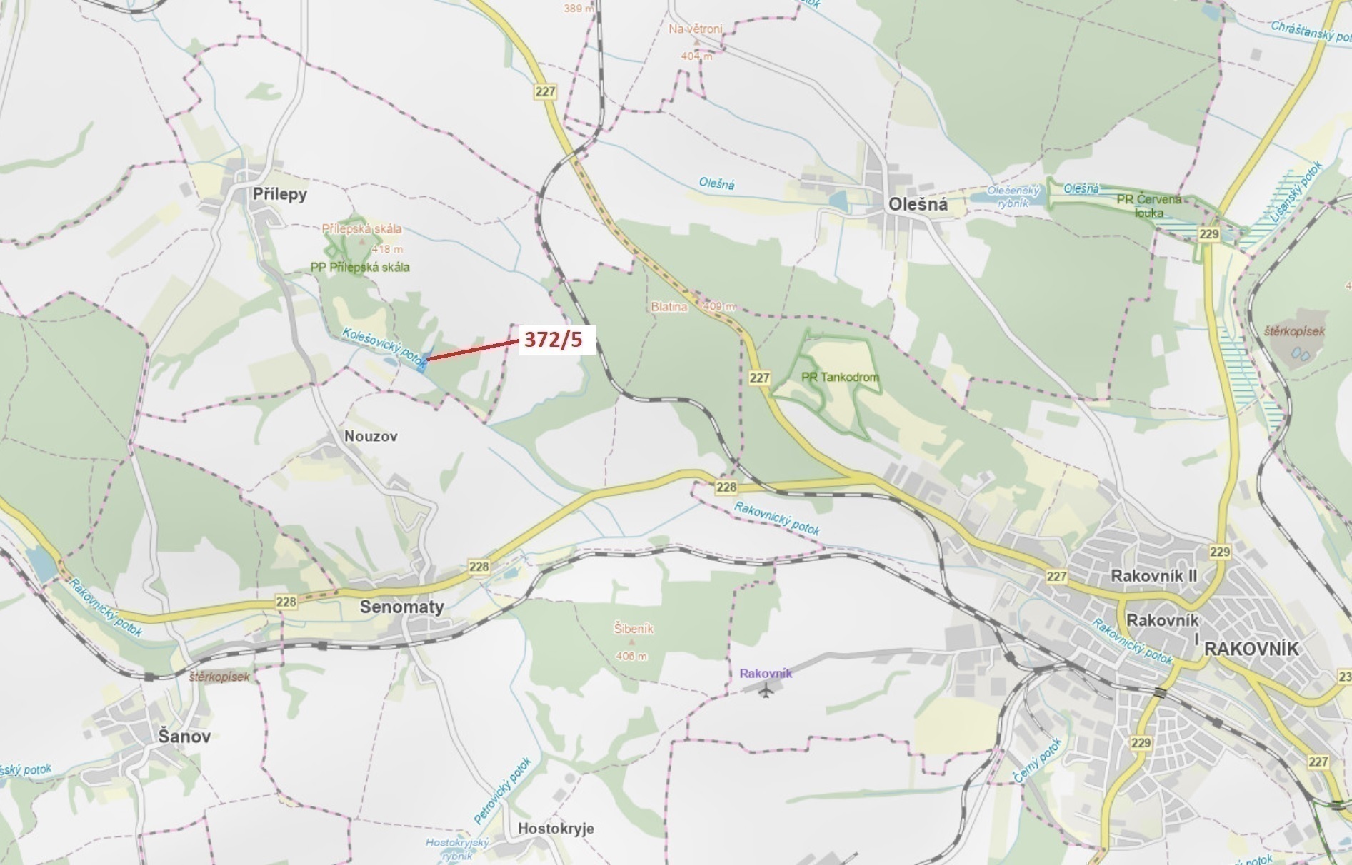 Lesní pozemek o výměře 7 060 m2, parcelní číslo 372/5, podíl 1/1, katastrální území Přílepy, obec Přílepy, obec s rozšířenou působností Rakovník, okres Rakovník, Středočeský kraj. Po těžbě.