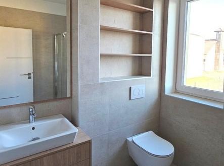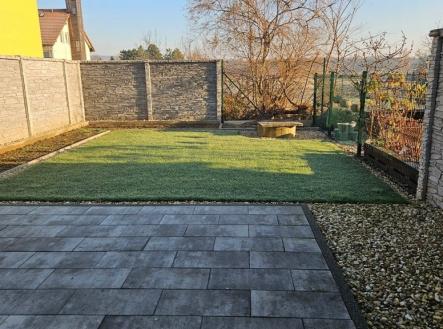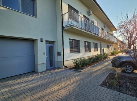 Prodej bytu 4+kk + technická místnost, s garáží a zahradou, na velmi pěkném, klidném místě obce Přísnotice, okres Brno - venkov. Nabízený byt je stavebně řešený jako rodinný dům, přiléhající k sousednímu bytovému domu, v katastru nemovitostí je však vedená jako bytová jednotka. Jako samostatná nebytová jednotka je pak vedená i garáž. Obě jednotky jsou po právní stránce součástí přiléhajícího bytového domu, ve kterém se nachází celkem 7 bytových jednotek o velikostech 3+kk až 4+kk. K zahradě za domem má vlastník nabízeného bytu výlučné právo užívání. Nemovitost se nachází poblíž obecní návsi, s výhledem do okolní krajiny, na les a kopec Výhon. Obec Přísnotice je z centra Brna vzdálená přibližně 25 km, zhruba 30 minut jízdy autem, 40 minut jízdy IDS (autobusy + vlaky). Vlaková stanice je v sousední obci Žabčice, vzdálená 2 km od bytového domu. Do dalšího okresního města - Břeclavi - je dostupnost podobná, jen o zhruba 10 minut delší. V obci Přísnotice je evidováno přibližně 900 obyvatel, v obci se nachází mateřská i základní škola, knihovna, kulturní dům, kostel, dětské hřiště, atletický oddíl pro děti a mládež a další sdružení a organizace. Nemovitost byla kolaudovaná v roce 2023, krátce obývaná, vše je ve vynikajícím, zánovním stavu. Ostatní jednotky v přiléhajícím bytovém domě jsou už trvale obydlené. Vše je připravené k okamžitému nastěhování. Celková užitná plocha bytu je 130 m2, garáže 21m2. Celková plocha pozemku je 157 m2, z tohoto zastavěná plocha domu 73 m2 (6 x 12,22 m), zahrada 84 m2 (7,11 x 11,8 m). Dispozice domu: 1.NP (51,8 m2): garáž, 20,6 m2, vstupní chodba 14 m2 technická místnost (kotelna, prádelna, sušárna) 11,3 m2, samostatné WC, schodiště. 2.NP (45,7 m2): schodišťový prostor s chodbou 8 m2,obývací pokoj s kuchyňským koutem 23,2 m2, pokoj 9,6 m2, koupelna se sprchovým koutem a WC 4,9 m2. 3.NP (53,6 m2): schodišťový prostor s chodbou 15,6 m2, pokoj 23,2 m2, pokoj 9,3 (s připravenými vývody IS pro kuchyňskou linku), koupelna s vanou a WC 5,5 m2. 4:.NP: půdní prostor, prozatím jako úložný (není pochůzný) Byt je vybavený kuchyňskou linkou, zhotovenou na zakázku, obsahuje veškeré kuchyňské spotřebiče - indukční varnou desku, digestoř, el. troubu, mikrovlnnou troubu, myčku, lednici s mrazákem - vše je necelé 2 roky nové. Ostatní vybavení pokojů, zobrazené na fotografiích, je pouze vizualizace případného zařízení. Měsíční náklady na bydlení, včetně fondu oprav, činí přibližně 5.100,-Kč. Technické údaje/vybavení nemovitosti: Budova je napojena na veškeré inženýrské sítě, k využití pro tento byt je také vlastní studna, ze které je alternativně možné čerpat vodu v celém bytě nebo ponechat připojení na obecní vodovodní řad. Vytápění je zajištěné vlastním, plynovým, kondenzačním kotlem zn. Baxi Duo-Tec s průtokovým ohřevem vody se zásobníkem na 160l. V obytných pokojích , orientovaných na jihozápad - obývacím pokoji s kuchyňským koutem a v místnosti o patro výš - jsou připravené vývody na instalaci klimatizace. Nemovitost je postavená z keramických tvárnic POROTHERM 30 PROFI DRXFIX, zateplena v tloušťce 200 mm. Okna se sedmikomorový profil s termoizolačním trojsklem, střešní okna VELUX s termoizolačním trojsklem. Předokenní žaluzie s elektrickým ovládáním Garážová vrata jsou elektricky ovládaná. Podlahy: dlažba keramická, lepený vinyl zn. VEPO, sanitární keramika Concept. Interiérové dveře s obložkovými zárubněmi. Nemovitost je připravená k okamžitému nastěhování.