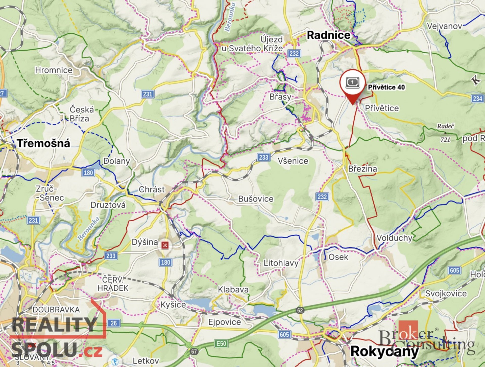 Nabízíme Vám prodej rodinného domu o zastavené ploše domu 123 m2, podlahové ploše 105 m2 a celkové ploše pozemku 743 m2 v obci Přívětice. Rodinný dům o dispozici 3+kk v malebné a velmi klidné obci Přívětice u Rokycany je ideální pro rodinné bydlení i rekreaci. Velkou výhodou je skvělá dostupnost do Plzně po dálnici a zároveň rychlé spojení do Rokycan. Cihlový dům je napojen na elektřinu a veřejný vodovod, k dispozici je také kopaná studna. Odpady jsou svedeny do jímky. Vytápění zajišťují elektrické přímotopy, podpořené solárními panely na výrobu elektřiny i vytápění. Dům má dva komíny což znamená, že je možnost podpořit vytápění krbovými kamny třeba i s výměníkem. Dále má dům sklep a půdu s možností půdní vestavby. Střecha byla rekonstruována v roce 2012. Podlahy v pokojích tvoří linoleum, v chodbě, koupelně a na toaletě dlažba, základem je betonová deska. Energetická náročnost budovy PENB je momentálně G. Nemovitost je čistá, vyklizená a připravená k okamžitému bydlení, nachází se v opravdu tiché části obce. Ideální volba pro ty, kteří hledají klid venkova s výbornou dostupností města. S financováním Vám rádi pomůžeme. Neváhejte nás kontaktovat a domluvte si prohlídku domu.
