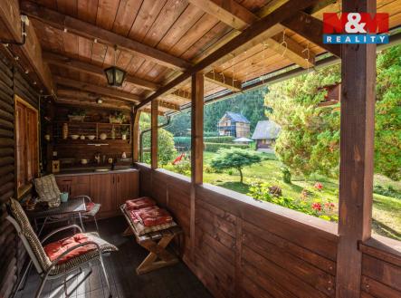 Nabízíme k prodeji dřevěnou chatu v malebné a klidné části obce Přívrat. Ideální místo pro rekreaci a útěk od městského shonu. Chata má dvě nadzemní podlaží a je podsklepená. Nabízí prostornou verandu s venkovní kuchyní, kde si můžete vychutnat ranní kávu s výhledem do okolní přírody. Dále obývací pokoj, menší kuchyň, toaletu a spíž, v patře 2 pokoje a ještě menší půdní prostor. Koupelna je nová, přístupná zvenčí. Voda je do chaty přivedena z pramene. Chatu obklopuje udržovaná zahrada o velikosti 704 m2, na které je umístěna pergola a zahradní domek s dílnou, dále bazén s ohřevem, který je také součástí prodeje. Přístup je po lesní cestě a dále skrz zahrady zajištěn nájmem za 120 Kč/měs. Chata umístěna na pozemku o rozloze 704 m², který poskytuje dostatek prostoru pro zahradničení nebo relaxaci. Stav nemovitosti je velmi dobrý, což umožňuje okamžité využití. Okolí stvořené k výletům. V obci je skiareál a vyhledávaný PINGUin park, tenisový kurt, dětské hřiště, obchod a další vyžití.