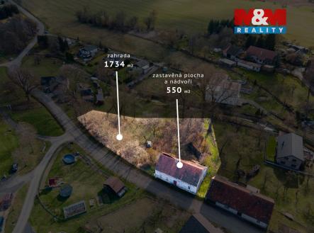 Nabízíme k prodeji podíl o velikosti 1/3 na krásné zahradě o celkové výměře 1 734 m², která se nachází v klidné lokalitě. Pozemek sousedí s loukou a dále navazuje na potůček, což vytváří jedinečné prostředí pro odpočinek i relaxaci v přírodě. Součástí je také zastavěný pozemek o výměře 550 m², na kterém se nachází nemovitost v havarijním stavu, vhodná k demolici nebo kompletní rekonstrukci dle vlastních představ. Na pozemku se dále nachází stodola, která nabízí další využití například pro skladování, dílnu či budoucí úpravy dle vašich představ. Na pozemek je přivedena elektřina a k dispozici je vlastní studna, což zvyšuje jeho potenciál pro budoucí využití. Jedná se o zajímavou příležitost pro investici nebo realizaci vlastního záměru v krásném přírodním prostředí. Pro více informací mě neváhejte kontaktovat.