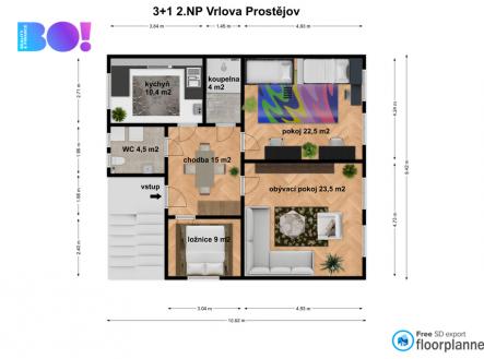 Nabízíme k prodeji prostorný byt po masivní rekonstrukci o dispozici 4+1 a celkové ploše 111 m², který se nachází v atraktivní lokalitě Prostějova, na ulici Vrlova. Byt se rozkládá ve 2. NP, kde najdete hlavní část o velikosti 89 m², řešenou jako 3+1 – obývací pokoj, kuchyni s jídelnou a dva samostatné pokoje. Velkou předností této nabídky je další pokoj 1+kk ve 3. NP (22 m²) s vlastní koupelnou a WC. Tento prostor lze využít mnoha způsoby: - jako samostatný pokoj pro dospívající dítě, které získá své soukromí, - jako kancelář či pracovnu – díky oddělení o patro výš máte klid na práci a ušetříte náklady za pronajatou kancelář - případně jako samostatnou jednotku 1+kk k pronájmu, která vám pomůže částečně pokrýt investici do bydlení. K bytu dále náleží: - zahrada 70 m² v osobním vlastnictví patřící výhradně k bytu, - prostorná garáž 29 m², -3 sklepní kóje o celkové ploše 35 m². Byt je po kompletní rekonstrukci, chybí pouze osazení dveří se zárubněmi, které si nový majitel vybere podle vlastního vkusu. V domě jsou jen dva byty, což zaručuje klid a soukromí. Lokalita: Ulice Vrlova leží v klidné, vilové rezidenční čtvrti s výbornou dostupností do centra města i na výjezdy dálnice D1 směr Olomouc a Brno. Velkým benefitem je také blízkost rekreační zóny Hloučela, která nabízí procházky, cyklostezky i sportovní vyžití v přírodě. V okolí se nachází škola, školka, obchody i zastávka MHD. Tento byt představuje skvělou příležitost pro rodiny, které hledají komfortní a flexibilní bydlení s možností využít horní pokoj podle vlastních potřeb – ať už pro rodinu, práci nebo jako zdroj příjmu z pronájmu horního bytu 1+kk. S případným financováním Vám rádi pomůžeme. V případě zájmu nás prosím kontaktujte a domluvíme si termín prohlídky.