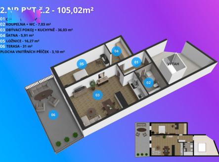 Prodej rezidenčního bytu č.02, 2+kk, ul Mlýnská, Prostějov
