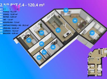 Prodej bytu, 4+kk, 123 m²