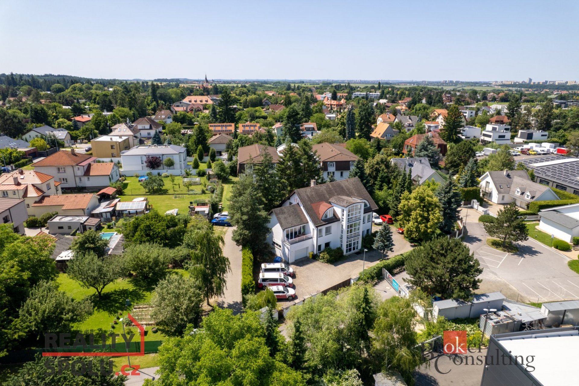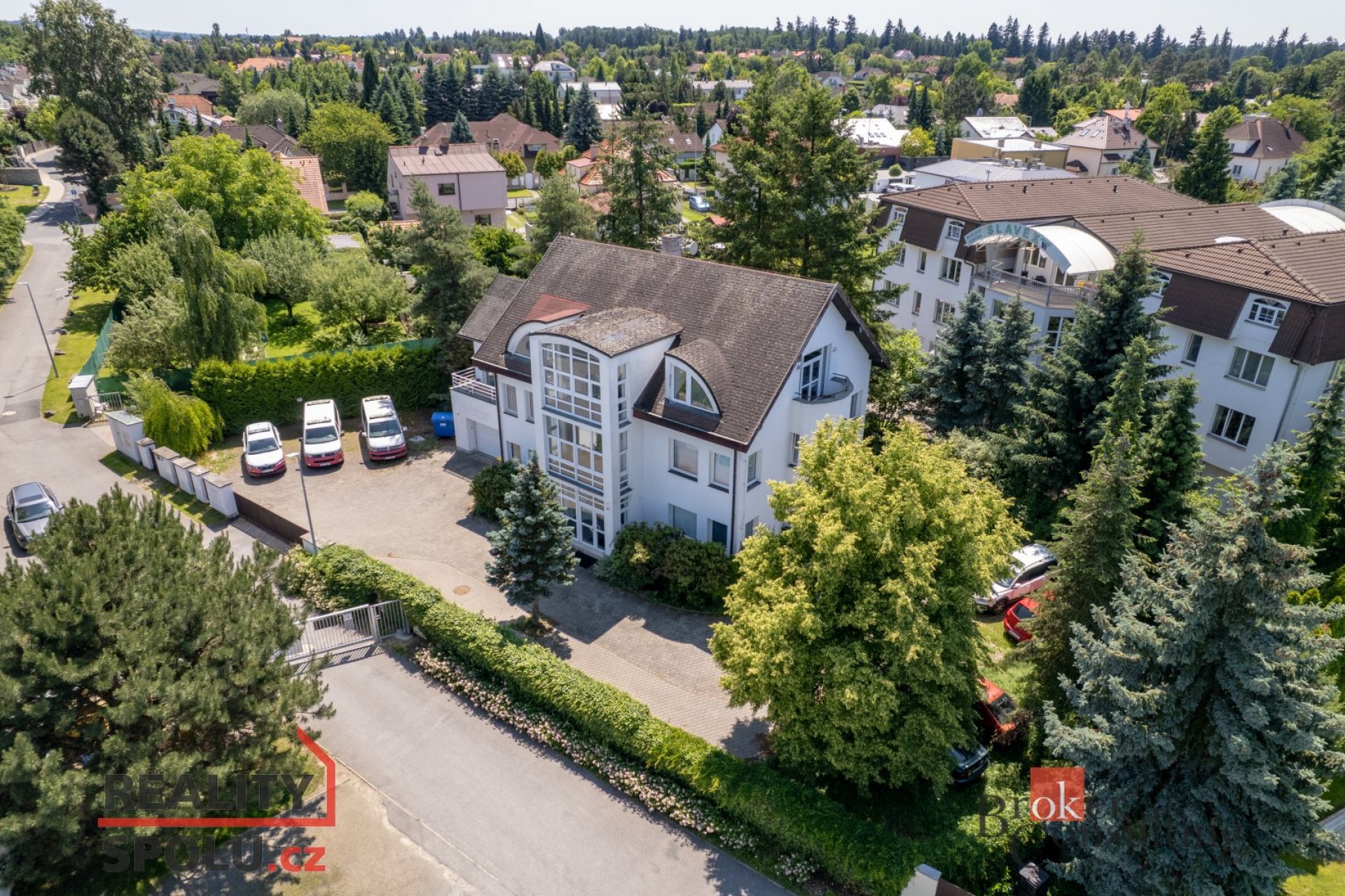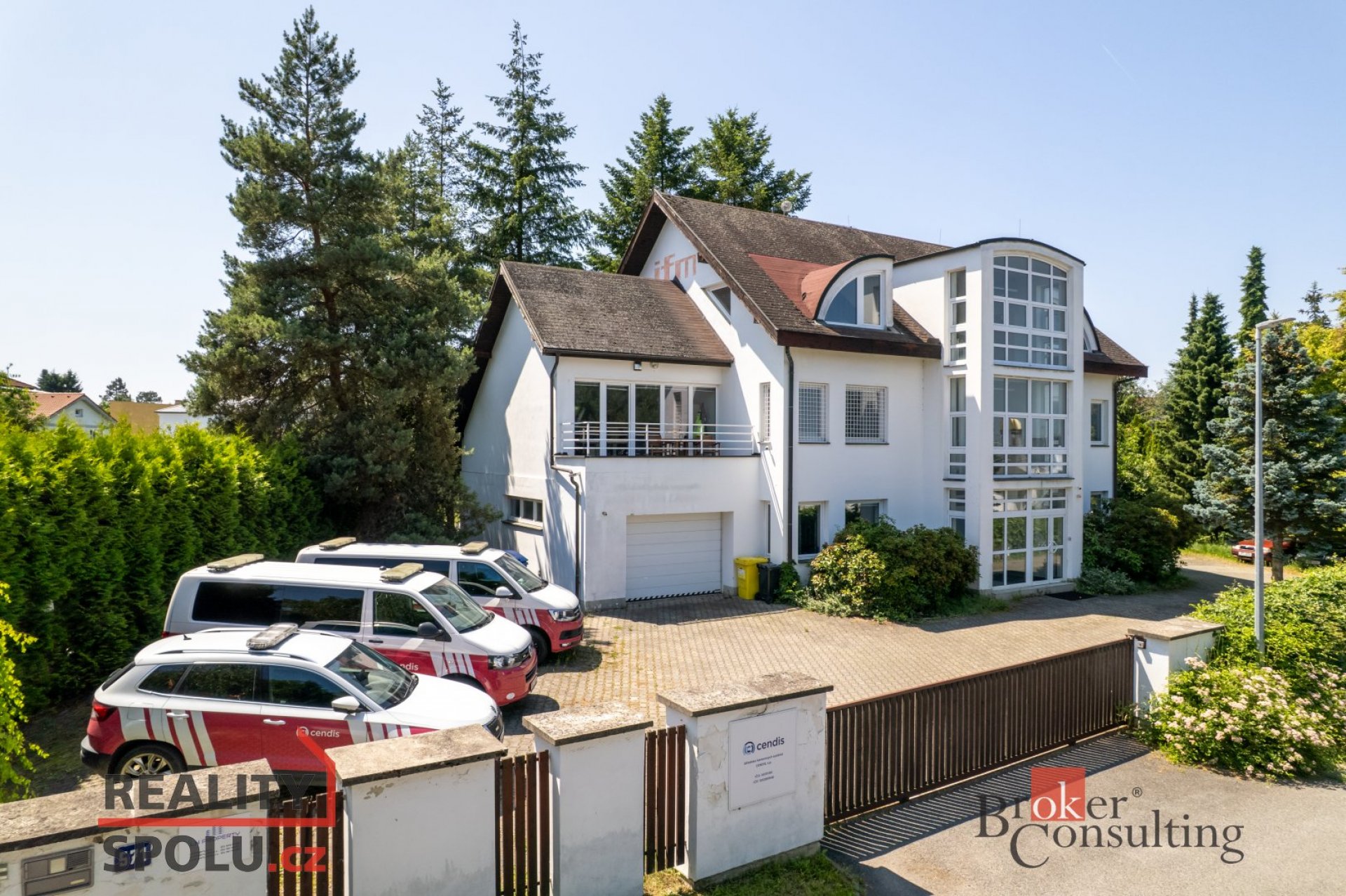 Na prodej administrativní objekt s vlastním pozemkem v obci Průhonice. Jedná se o třípatrovou budovu o celkové výměře 447 m2 včetně parkovacích míst za branou pro minimálně 12 aut. Celkově má budova 9 oddělených kanceláří (místností). V přízemí je vedle vstupní haly kancelář, jedna zasedací místnost a garáž, která může sloužit jako sklad a nebo parkování vozidla. V prvním patře je celkem pět kanceláří a jedna zasedací místnost , ve 2. patře jsou dvě kanceláře a velká zasedací místnost. Vše je poměrně variabilní. Vytápění a ohřev TUV zajišťuje zcela nový Viesman plynový kotel. Na pozemek se vjíždí automatickými vraty a vše je zabezpečeno EZS. Je zde dostatek zeleně na relaxaci, což pomáhá k vytvoření příjemného pracovního prostředí. Nemovitost je vhodná jako zázemí pro menší firmu. Nespornou výhodou je vynikající dostupnost Prahy a dálnice D1. Objekt má nyní nájemníka. Nemovitost je možné upravit na 3 velmi luxusní byty.
