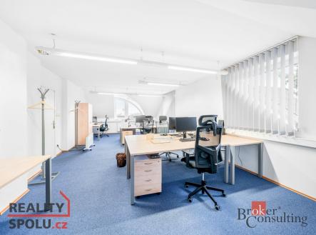 Nabízíme k pronájmu administrativní objekt s vlastním pozemkem v obci Průhonice. Jedná se o třípatrovou budovu o celkové výměře 447 m², včetně parkovacích míst za branou pro minimálně 12 aut. Aktuálně je budova rozčleněna na 9 oddělených místností, což poskytuje široké možnosti přizpůsobení dispozic pro rodinné bydlení. Přízemí nabízí vstupní halu, kancelář, zasedací místnost a garáž, která by mohla sloužit jako sklad nebo parkovací prostor. První patro obsahuje pět místností vhodných pro ložnice nebo pracovny, druhé patro pak disponuje dvěma místnostmi a velkým prostorem, ideálním pro společenské aktivity. Nový plynový kotel Viessmann zajišťuje efektivní vytápění a ohřev TUV. Na pozemek je vjezd automatickými vraty a vše je zabezpečeno EZS. Okolní zeleň zajišťuje příjemné prostředí pro relaxaci. Díky výborné dostupnosti Prahy a dálnice D1 je tento objekt ideální pro rodinné bydlení.