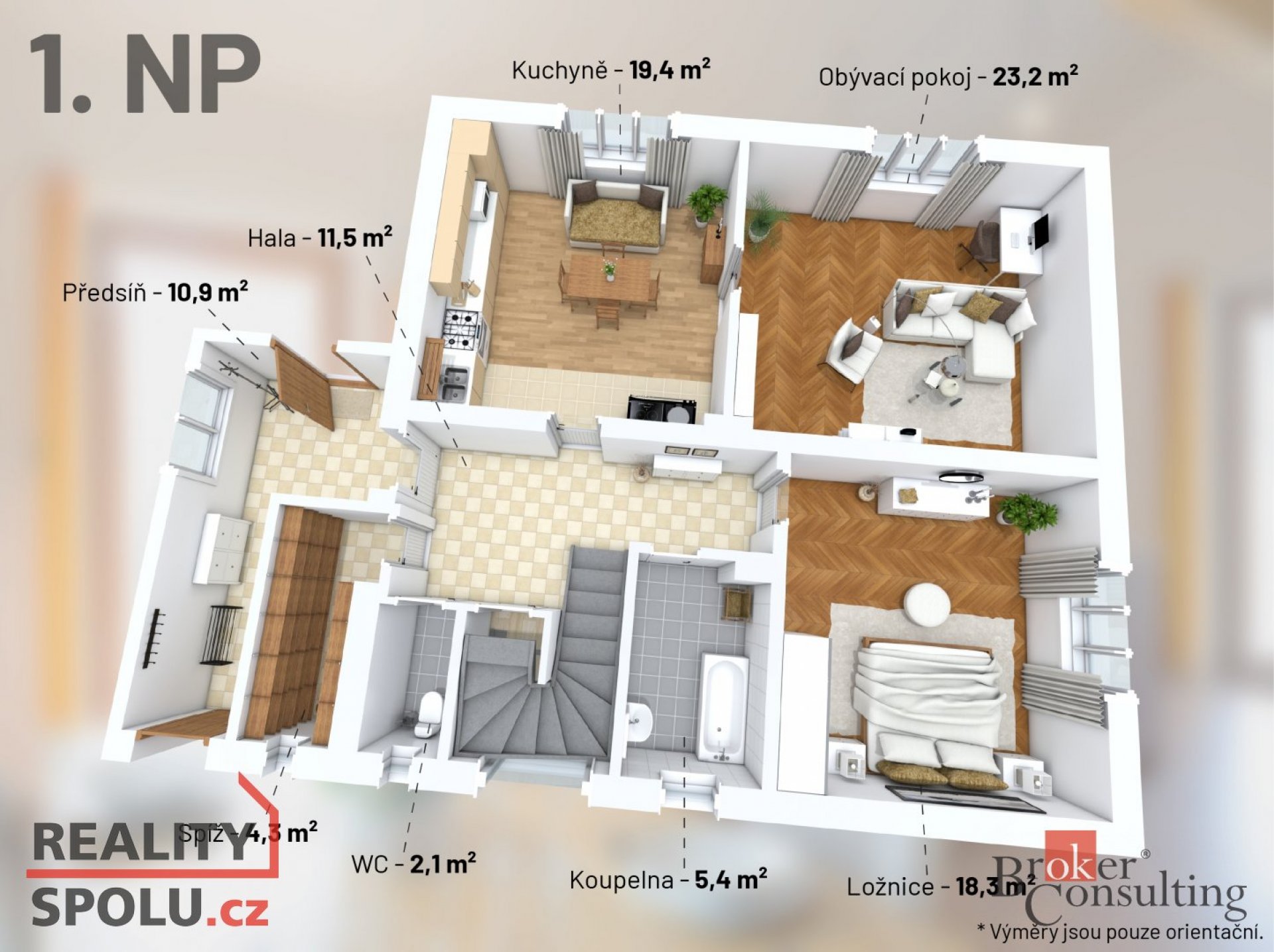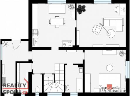 Prodej prostorného rodinného domu o podlahové ploše 250m2 + stodola + garáž v obci Psáře. Za pouhých 28 minut autem po D1 a jste v Praze na stanici Metra Opatov. a pouhých 10 km od Vlašimi, která poskytuje veškerou občanskou vybavenost. Na krásném rovinatém pozemku o výměře 3 305 m2 se nachází samostatně stojící rodinný dům, s obytným přízemím a podkrovím o dispozici 6+kk. Na předzahrádce vás přivítají růže a bylinky, které stačí vzít a použít v kuchyni. V přízemí se ze vstupní chodby dostanete do prostorné kuchyně a pokoje, které by šly podle současných trendů propojit do jednoho velkorysého prostoru. Dále nabízí samostatnou ložnici, koupelnu s vanou, samostatnou toaletu a spíž pro laskominy ze zahrádky, které udělají vždy radost. První patro je přístupné po širokém schodišti a nabídne tři prostorné pokoje, koupelnu a další samostatnou toaletu. Vyjít se dá i na střechu verandy, která může posloužit jako terasa. Prostorná půda je pak prostorem pro uložení věcí, které nepotřebujete každý den. Dům je cely podsklepen, což nabízí spoustu úložného prostoru. Za domem je dále stodola a garáž. Parkování na pozemku vedle domu je pro několik vozů. Za stodolou je pak zahrada aktuálně využívaná jako louka s několika ovocnými stromy a širokou možností budoucího využití. Dům je napojen na obecní vodovod, elektřinu, plynový sporák na vaření je na Propan Butan. Odpady jsou aktuálně řešeny septikem na pozemku za domem. Vytápění je možné buď v kuchyni umístěným sporákem na dřevo, který kromě dodání tepla upeče i ten nejvoňavější štrůdl z místních jablíček, nebo lze dům vytápět ústředním topením aktuálně na tuhá paliva. Velkou výhodou je možnost budoucího využití prostředků z dotací na výměnu zdroje tepla, doplnění fotovoltaiky nebo tepelného čerpadla. Taktéž na zateplení lze nyní čerpat dotaci z několika programů. Potenciál tohoto prostorného domu oceníte, až jej zažijete na vlastní oči a navnímáte širší okolí obce a zvlněné krajiny kolem.