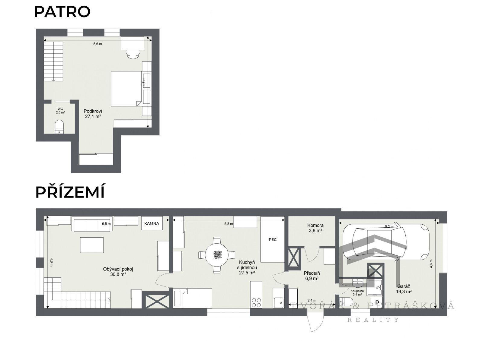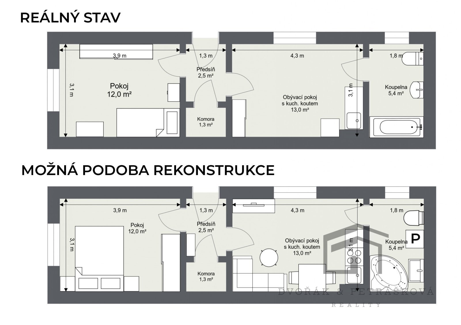 Realitní společnost Dvořák&Petrášková reality Vám nabízí k prodeji rodinný dům v Putimi u Písku. Představujeme vám jedinečný rodinný dům z roku 1945, který je udržovaný a připravený na váš nový život. Dům je rozdělen na 2 části, jedna je obytná a má 105m2 užitné plochy a obytné podkroví, kde se nachází ložnice. Druhá část má 34m2 a může sloužit pro účely vlastního podnikání, nebo renovaci a vybudování nového apartmánu určeného k pronájmu. V obytné části naleznete koupelnu se sprchovým koutem a toaletou, která prošla před několika lety rekonstrukcí, další WC je potom v patře. Dům je plně napojen na obecní vodovod, kanalizaci i plynovou přípojku. Vytápění zajišťuje plynový kotel, ale pro milovníky tradice je zde i funkční kachlová pec. V obývacím pokoji vás pak zahřejí krbová kamna. Pokoj je situován do ulice a ložnice v půdní nástavbě. Nejdůležitější rekonstrukce proběhly okolo roku 2000. Celý pozemek o rozloze 390 metrů nabízí dva pohodlné příjezdy. Zahrada je převážně okrasná s množstvím růží a květin. K dispozici je prostorná garáž a příjemná pergola, ideální pro posezení za každého počasí. Nechybí ani dostatek úložných prostor, které jsou doslova všude, např. na kola. Dům je taktéž částečně podsklepený. Putim je místo, kde se žije kvalitní a nerušený život. Najdete zde útulnou hospodu, penzion s hostincem, školku, ale i minizoo, která potěší ty nejmenší, ale i dospělé. Díky autobusovému spoji se do Písku dostanete za 10 minut. V Písku pak naleznete veškerou občanskou vybavenost, včetně mateřské školky, škol, větších obchodů a restaurací. Tento dům v Putimi je tak ideální volbou pro ty, kdo hledají klidné bydlení s výbornou dostupností všech služeb. Výhodou je taktéž dostavěná dálnice D4 Praha - Písek, která zaručí pohodlnější a přímé cestování. PENB je v kategorii G - vytápění plynovým kondenzačním kotlem, nebo za pomocí krbových kamen. Okna kombinace plastová 2 skla a dřevěná špaletová okna, zateplení stropu. Náklady na bydlení: Plyn - 1 800,- Kč měsíčně Elektřina - 1 000,- Kč měsíčně Voda - 900,- Kč čtvrtletně K revitalizaci podkroví je dostupná projektová dokumentace a plány. Dům má původní projektové plány z roku 1945. Samozřejmostí je rychlé vyřízení hypotéky bez poplatků, za velmi příznivých podmínek. Základní propočet hypotéky je možné získat při domluvené prohlídce nemovitosti. Pro více informací mě neváhejte kontaktovat.