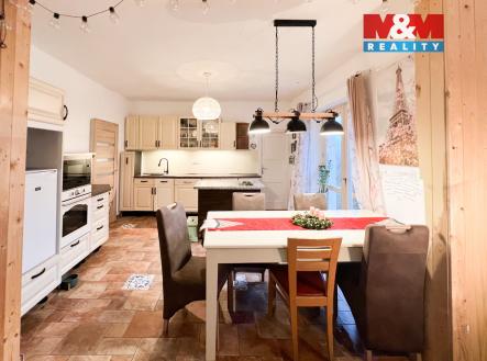 Nabízíme k prodeji zrekonstruovanou historickou usedlost ve středověkém městečku Rabí, proslulém největším hradním komplexem v Čechách, zasazeném do malebné krajiny Pošumaví. Tato nemovitost spojuje kouzlo starých časů s komfortem moderního bydlení. Rekonstrukce proběhla s důrazem na zachování původních architektonických prvků a zároveň nabízí pohodlí pro celoroční užívání jak pro rodinné bydlení či rekreaci. Nemovitost stojí na pozemku o rozloze 1 881 m² a plynule na ni navazuje rozsáhlý ovocný sad (1 211 m²) v zastavitelném území – ideální investice do budoucna. Dům o dispozici 3+2 prošel v posledních letech velmi vkusnou a kvalitní rekonstrukcí. Dominantou kuchyně je samostatný varný ostrůvek a praktická oddělená spíž. Hlavní ložnice disponuje vlastní koupelnou. Podkroví vybízí k půdní vestavbě pro rozšíření obytných prostor. Rabí nabízí neopakovatelnou atmosféru historie, krásnou přírodu, gastro zážitky, kulturu, turistické trasy a přitom klid venkova. Přijďte se okouzlit!
