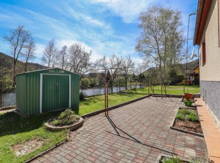 Vítejte na tomto jedinečném, slunném rovinatém místě, v klidu a tichu u řeky Otavy v Čepicích u Sušice. Čepice je obec, cca 2,5 km JZ od Rabí a 5 km od Sušice v okrese Klatovy s čepickým starým mostem, který se klene přes řeku Otavu a stává se tak pomalu technickou památkou. Právě zde nabízíme rodinný dům se zahrádkou, na místě s krásným potenciálem, u řeky Otavy, která nikdy neohrozila dům, naopak je vítaným zdrojem v teplých měsících k zavlažování a koupání. Dvoupodlažní podsklepený cihlový dům ze sedmdesátých let s garáží, vyhřívaný celodenním sluncem, přesto ve velmi dobré kondici, stále v udržovaném a suchém stavu i bez modernizace vybavení slouží v podstatě k okamžitému užívání. Velkou výhodou jsou obývané místnosti všechny na jihozápadní stranu, vyhřívané celodenním sluncem s uklidňujícími výhledy do přírody a řeku. Ve zvýšeném přízemí se nachází předsíň /chodba, odtud se vstoupí do podkrovních místností i sestoupí do sklepních prostor. Vnitřní dispozice o obytné ploše cca 120 m2 s celkovou plochou pozemku 336 m2. Přízemí 2+1: kuchyně se sporákem na PB s kuchyňskou linkou, obývací pokoj, ložnice, spíž, koupelna s vanou a samostatné WC. V patře 2+kk: chodba, menší kuchyňka propojená s obývacím pokojem a s kamny na TP ve stylu staročeské pece. Dále ložnice, koupelna s vanou, umyvadlem, boilerem a WC. Pod celou obytnou částí se nachází sklepní prostory: kotelna, dílna, spíž, prádelna. Na pozemku stojí plechová kolnička na úschovu nářadí a na dům navazuje garáž s vjezdem z tiché ulice. Zadní část domu obklopuje zahrada, která krásně doplňuje harmonii z užívání v místě s obklopenou přírodou a protékající řekou. Vytápění zajišťuje automat. kotel ÚT/na TP, voda čerpána z vlastní kopané studny, el. 230/400V, odpad sveden do septiku. Čepice jsou místem odpočinku, souznějící s přírodou, volně protékající řekou v klidném chodu událostí, s klidnými večery a užívanými odpoledni. O Čepicích psal ve svých dílech Karel Klostermann, do Čepic zajížděl na ryby Jan Werich i Vlasta Burian. Čepice s obchodem, hostincem a několika drobnými službami poskytují základní možnosti občerstvení a odpočinku, veškerou občanskou vybavenost naleznete v nedaleké Sušici cca 5km. PENB se nyní vyhotovuje, z tohoto důvodu uveden ve třídě G.