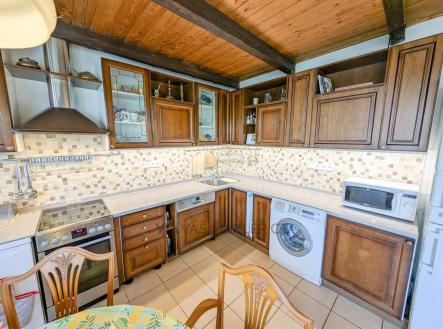 Žijte u Slapské nádrže v obci Rabyně – Loutí. Pouhých 7 minut od Slapské přehrady nabízíme hezký, světlý rodinný dům (4+1/T) ve velmi dobrém stavu i po technické stránce (126 m2) na pozemku o rozloze 1.309 m2. RD se nachází v klidné lokalitě, v lese u Slap. Kvalitní cihlová stavba, projektována a stavěna architektem, disponuje dvěma podlažími se čtyřmi pokoji, technickým zázemím a sklepem. V prvním patře se nachází 2x ložnice, prostorný obývací pokoj s kuchyňským koutem (kuchyní), koupelna s WC a komora. Z obývacího pokoje je přímý vstup na prostornou terasu (25 m2) orientovanou na jihozápad s výhledem na zahradu, směrem k nádrži. V přízemí je samostatná ložnice s okny do zahrady. Zbývající místnosti v tomto podlaží slouží jako technické zázemí a úložný prostor (kotelna s kotlem na pelety, elektrickým kotlem, sklep, atd.). Pod terasou najdete venkovní krb s udírnou. Půda je z části pochozí a lze ji použít jako další úložný prostor. Vzrostlá a udržovaná zahrada, která na hranicích pozemku je zahuštěna keři a stromy, vytváří přirozenou zelenou bariéru. Na zahradě a v domě umožňuje vlastníkům soukromí a samotu k odpočinku. Z pozemku lze jít brankou rovnou do lesa. Dům je napojený na vlastní studnu (hluboký vrt) s výbornou pitnou vodou (druhá studna je záložní). K zalévání je možné použít cisternu a kontejnery na vodu. K domu patří také bazén (5m). Parkování je možné u severovýchodního vstupu do domu. Nemovitost prošla rekonstrukcí v roce 2017, dříve sloužila jako letní dům, nyní je využívána celoročně. Za zmínku stojí také velmi dobré sousedské vztahy. Příroda a rekreace: v blízkosti krásné přírodní koupání ve Slapské přehradě, rybaření, vodní sporty, potápění atd. Okolní lesy lákají k turistice a cyklistice. V okolí je několik tipů na výlety, včetně známé vyhlídky na Homolce s krásným výhledem na Slapskou přehradu. Další aktivity: Golfové hřiště Slapy, lanový park Slapy, možnost jízdy na koních v nedalekých farmách. V blízkosti je také známý hotel VZ Měřín, který nabízí sportovní i wellness zázemí (aquacentrum). V Rabyni a okolí jsou potraviny, cukrárna a restaurace. Nejbližší pošta, škola a školka se nacházejí v obci Slapy nebo v Neveklově. Zaváží zde společnost Rohlík. Kultura a památky: Zámek Konopiště, zřícenina Zbořený Kostelec atd. V případě zájmu mne neváhejte kontaktovat.