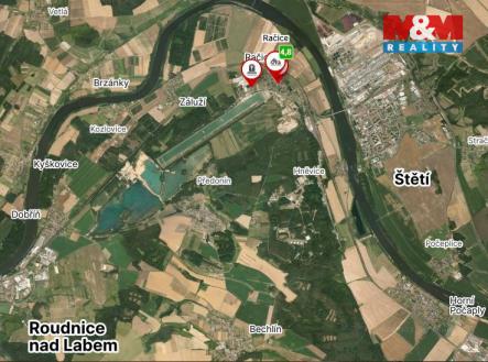 Prodej zasíťovaného pozemku v obci Račice. Pro tento pozemek rezervovány kapacity na připojení na vodovod a kanalizaci. Sousedství veslařského kanálu, který byl zpřístupněn pro veřejnost. Možnost rekreačních aktivit jako je koupání, opalování, trénink, hřiště, tělocvičny, posilovny, hotel, sauna. Račický areál je zároveň i rybářským revírem. Okolo závodní trati a vratného kanálu je 5 kilometrů dlouhá asfaltová silnice bez dopravy, oblíbená zejména in-line bruslaři, cyklistická stezka, stezka pro chodce. Nedaleko je vyhledávaná zatopená pískovna. Regulativa - plochy bydlení v rodinných domech (BI) - výška hlavního objektu nepřekročí 2,0 NP, tj. přízemí s obytným podkrovím při respektování okolní výškové hladiny, zastavitelnost pozemků max. 30 %. Je možný výběr z dalších 3 prostředních parcel o výměrách 903 až 1099 m2. Veškerá občanská vybavenost ve 4 km vzdáleném Štětí. Praha 44 minut, Mělník 19 minut, Roudnice nad Labem 11 minut. Více info u makléře