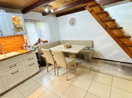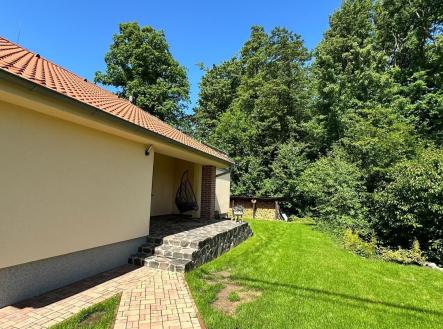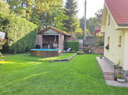 Hledáte klidné bydlení obklopené přírodou, a přitom v dosahu Prahy? Máme pro vás jedinečnou nabídku. V malebné obci Radějovice, jen pár minut jízdy od hlavního města, nabízíme ke koupi prostorný dvoupodlažní rodinný dům se zastřešeným zahradním posezením, celkem o užitné ploše 175 m², který se nachází na krásně udržovaném pozemku o výměře 1 040 m². Dispozice a interiér: Dům má dispozici 4+1 a poskytuje dostatek místa i pro větší rodinu. V přízemí se nachází obývací pokoj s krbovými kamny s výměníkem, které spolu s elektrokotlem zajišťují ústřední vytápění celého domu, samostatná prostorná kuchyně, koupelna, toaleta a velký pokoj. V patře jsou dva pokoje a nadchne Vás prostorná terasa s dechberoucím výhledem do okolního lesa – ideální místo pro ranní kávu, večerní víno nebo relaxaci u knihy. Dům je napojen na vlastní studnu, odpad je řešen jímkou. To zajišťuje nízké provozní náklady a soběstačnost. Na hranici pozemku vede obecní vodovod a obec má do budoucna v plánu domy v této lokalitě napojit na kanalizaci. Zahrada jako z pohádky: Součástí pozemku je pečlivě udržovaná zahrada, kterou protíná malebný potůček, pramenící pouhých 200 metrů od hranice pozemku. Díky svému původu je bezpečný a nehrozí jeho rozlití ani v období vydatnějších dešťů. Zvuk zurčící vody vytváří na pozemku klidnou a harmonickou atmosféru, kterou si okamžitě zamilujete. A to není vše – na zahradě se nachází velkorysé zastřešené venkovní posezení s grilem, které přímo vybízí k letnímu stolování, večerním setkáním s přáteli nebo rodinným oslavám pod širým nebem. Díky zastřešení si své chvíle pohody můžete užívat i při lehkém dešti, zatímco vůně grilovaných dobrot se mísí s vůní lesa a rozkvetlé zahrady. K dispozici je i zahradní domek na nářadí a přístřešek na dřevo. Výborná dostupnost: Přestože se dům nachází v zeleni, na okraji obce u lesa, autobusová zastávka Pražské integrované dopravy (PID) je vzdálena jen 300 metrů od domu. Pohodlné a rychlé spojení do Prahy je tak zajištěno během celého dne. Autem je to pouhé tři kilometry na obchvat, tedy například na Praze Chodov můžete být za patnáct minut. Lokalita: Radějovice jsou oblíbenou a vyhledávanou lokalitou díky své blízkosti k Praze, dobré občanské vybavenosti a především nádherné přírodě v okolí. V okolí naleznete cyklostezky, lesy a přírodní stezky – ideální pro aktivní rodiny, milovníky přírody nebo majitele domácích mazlíčků.