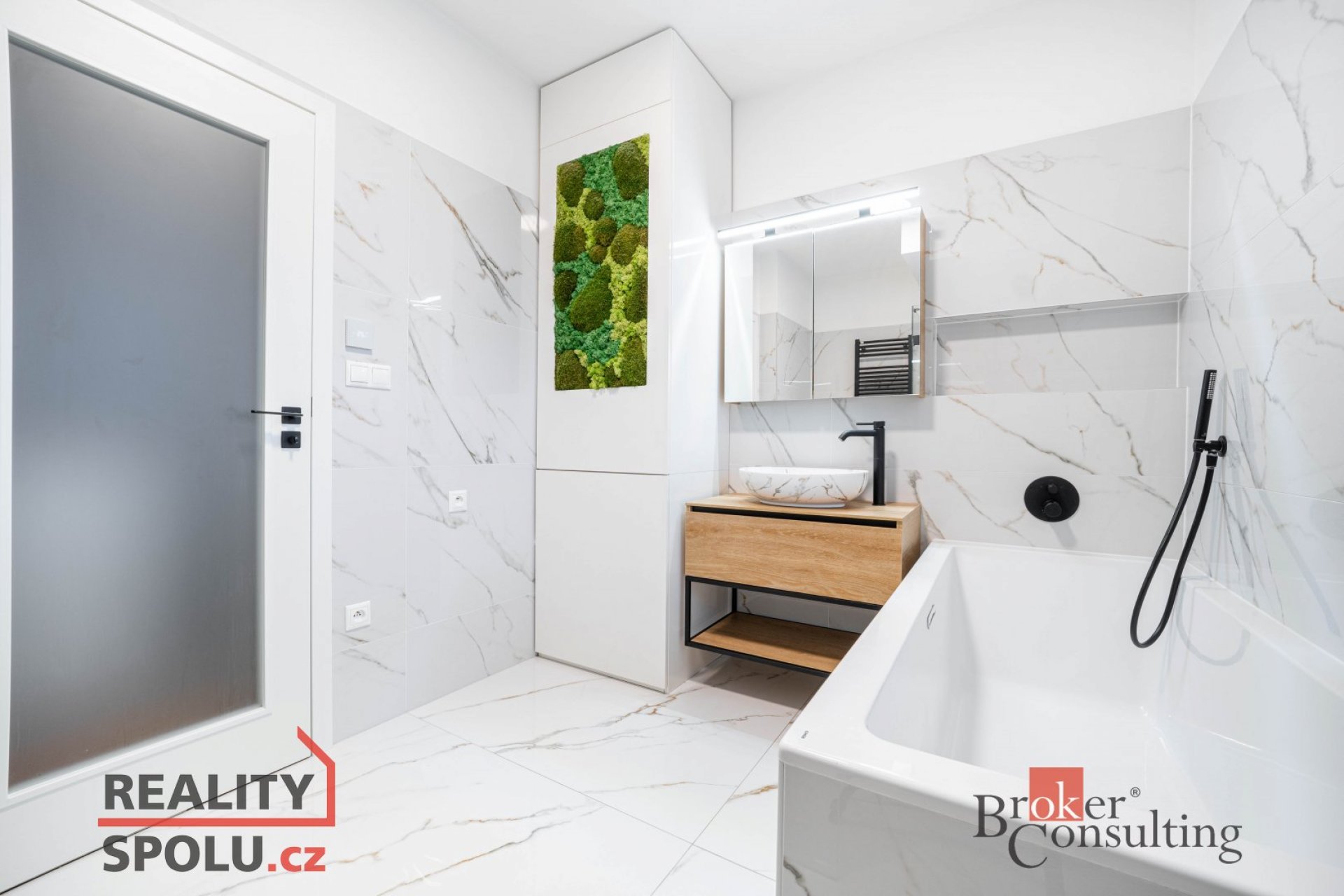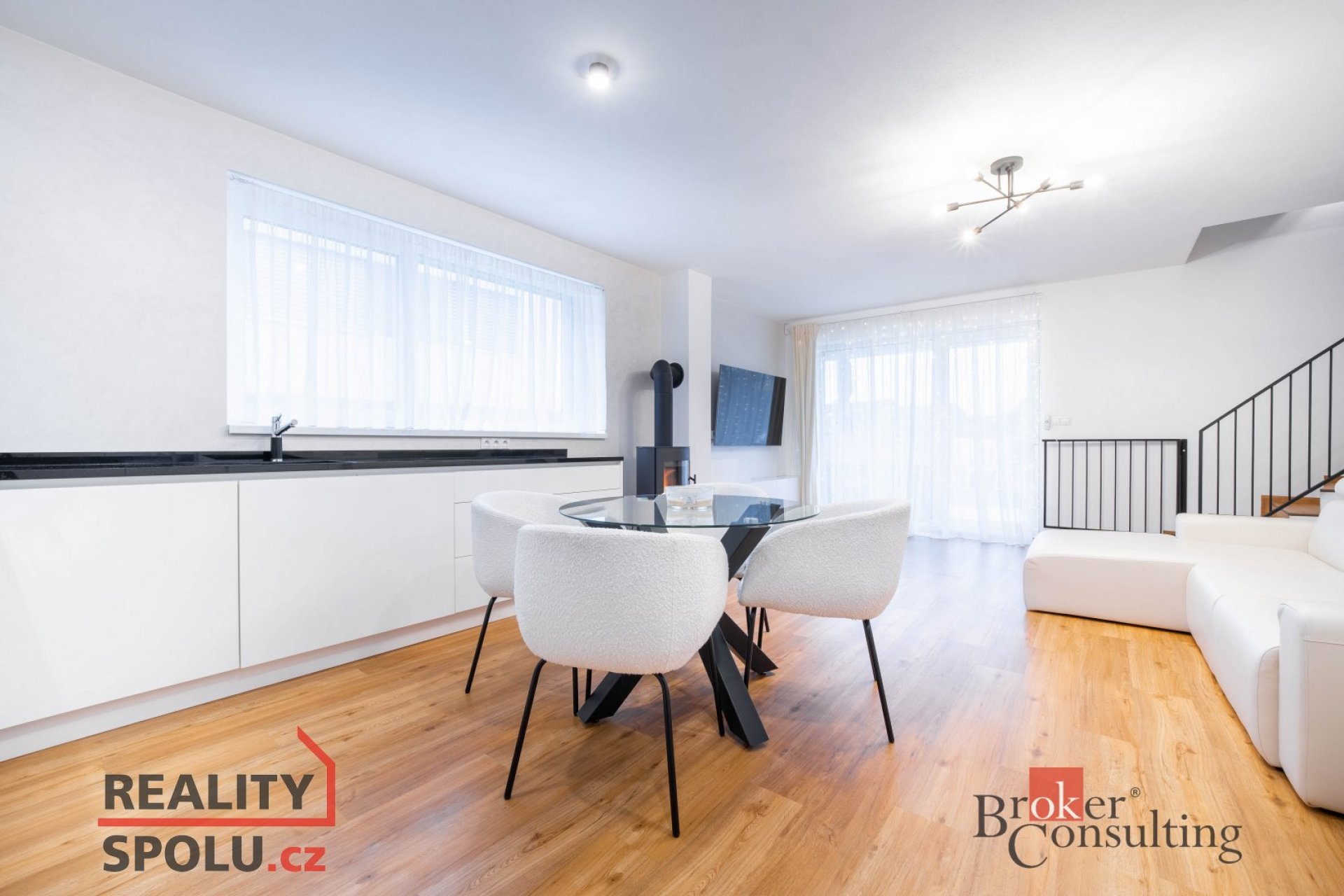 Luxusní mezonet 4+kk se zahradou, parkováním a nadstandardním vybavením Hledáte domov, který spojuje prostor, soukromí a styl v harmonický celek? Tento výjimečný mezonet nabízí komfort rodinného domu a praktičnost moderního bytu bez kompromisů. Je ideální pro rodinu i pro náročnější klienty, kteří chtějí mít vše vyřešeno a bydlet okamžitě. Dispozice a hlavní benefity Dvoupodlažní řešení přirozeně odděluje denní a klidovou část bytu. Srdcem domova je prostorný obývací pokoj propojený s kuchyní a jídelnou, odkud je přímý vstup na zahradu. Byt nabízí tři samostatné ložnice, z toho jednu s vlastní šatnou, která poskytuje komfortní úložný prostor i vyšší míru soukromí. Dispozici dále doplňují dvě toalety a samostatná prádelna. Komfort každodenního života podtrhují dvě parkovací místa před domem. Propojení obytného prostoru se zahradou vytváří příjemný pocit bydlení v rodinném domě, přitom si stále užíváte všechny výhody bytu. Soukromá zahrada jako další obytný prostor Zahrada není jen doplňkem, ale plnohodnotným rozšířením obytného prostoru. Vzrostlá zeleň poskytuje příjemné soukromí a upravený trávník láká k odpočinku i rodinným aktivitám. Najdete zde místo na ranní kávu, letní grilování i dětské hry. Praktický zahradní domek v kombinaci s prostorným skladem navíc nabízí dostatek úložného prostoru. Nadstandardní vybavení, které je možné po dohodě přenechat Interiér je navržen s důrazem na kvalitu a funkčnost. Nadčasový design dotváří moderní stěrky v jednotlivých místnostech, které podtrhují elegantní charakter celého prostoru. Luxusní kuchyň s pracovní deskou z přírodní žuly je vybavena vestavnými spotřebiči včetně trouby, kombinované trouby, kávovaru, vinotéky a myčky. Atmosféru domova dotváří krbová kamna, komfort zajišťují venkovní žaluzie a o klid i ochranu majetku se stará moderní zabezpečovací systém s alarmem a pohybovými senzory. Vybrané vybavení je možné po vzájemné dohodě přenechat. Bydlení bez kompromisů Tato nemovitost nabízí ideální rovnováhu mezi prostorem, soukromím a moderním komfortem. Vlastní zahrada, parkování přímo u domu a kvalitní technické zázemí dělají z této nabídky skutečně výjimečnou příležitost. Pro více informací nebo domluvení prohlídky nás neváhejte kontaktovat.