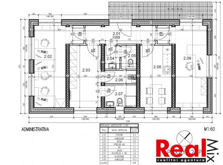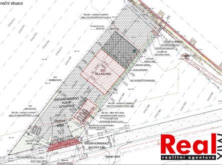 PLATNÉ STAVEBNÍ POVOLENÍ na výstavbu haly a kanceláří. Prodej komerčního pozemku o CP 2501m2 v k.ú. Rajhrad s vydaným stavebním povolením na výstavbu haly o ZP 339m2 a stavby pro administrativu o ZP 93m2. Možnost zastavění i větší části vč. možnosti přikoupení dalšího pozemku. Pozemek je přístupný z hlavní komunikace vedoucí na Syrovice (ul. Stará pošta), je v rovině a je lichoběžníkového tvaru, proto následující rozměry pozemku uvádíme jako průměrné - délka cca 95m, šířka cca 25m. IS (obecní vodovod a kanalizace, VN, NN, plynovod, optický kabel CETIN) - vše v přilehlé komunikaci. Stavební pozemek se nachází na západní straně obce v lokalitě Stará pošta, kde je vymezeno územním plánem rozšíření průmyslové zóny. Jedná se o zastavitelnou plochu a plochu smíšenou výrobní. V současnosti se okolo lokality nachází několik hal. Navržená stavba haly má obdélníkový tvar o rozměrech 18,1x18,7 m a je jednopodlažní. Výška po okap (římsu) je 8 m a hřebene 8,230 m od úrovně 0 m. Z komunikace III. třídy, ulice Stará pošta (p.č. 2138/1), je schválený nový sjezd. Sjezd by měl být realizovaný jako zpevněná betonová plocha. Parkovací místa pro výrobní halu by měla být zřízena na pozemku investora. Za halou je navržena zpevněná plocha v části betonová, ostatní zpevněné plochy jsou navrženy štěrkové. Hala byla projektovaná pro společnost zabývající se pronájmem mobilních jeřábů a jejich servisem. Hala měla sloužit k údržbě jeřábů a skladování potřebných náhradních dílů s možností venkovního mytí. Administrativní část je navržena na jižní straně pozemku. 1.NP je tvořeno z jednoho kontejneru, 2.NP tvoří pak kontejnerů pět. Rozměr stavby je 12,760x6,575 m. Celková šířka stavby pro administrativu je 7,775 m, výška je 6,52 m. V 1.NP byl navržen archiv a technická místnost. Ve 2.NP jsou navrženy dvě kanceláře, denní místnost, toalety, sprcha, úklidová místnost a šatna. Jedná se o stavby trvalé. Pod administrativou jsou navržena tři parkovací stání. Novostavby jsou navržena takto: Zastavěná plocha objektu haly: 338,6 m2 Zastavěná plocha objektu administrativy: 92,9 m2 Zpevněné plochy celkem: 1779,4 m2 Obestavěný prostor haly: 2795,6 m3 Užitná plocha haly: 325,60 m2 Užitná plocha 1.NP administrativy: 12,5 m2 Užitná plocha 2.NP administrativy: 62,8 m2 Lokalita je velmi dobře dostupná, neboť je zde napojení na dálnici D52 (směr Brno-Mikulov-Vídeň), která leží v těsné blízkosti pozemku, ve vzdálenosti cca 10 km je napojení na dálnici D1 (Brno - Praha) a D2 (směr Brno - Bratislava). Veškeré další podrobnější informace obdržíte v realitní kanceláři.
