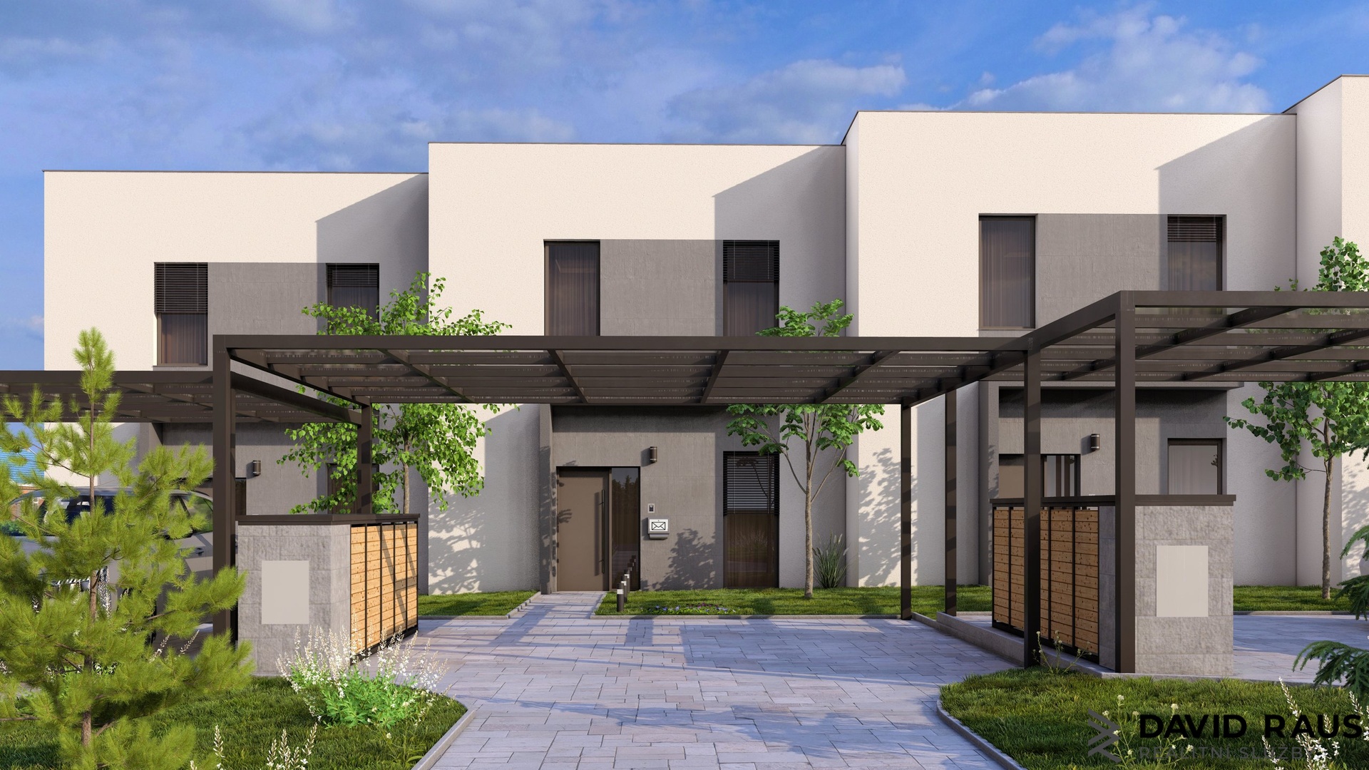 Nabízím k prodeji rodinný dům (č.3) o dispozici 5+kk, se zastřešeným parkovacím stáním na vlastním pozemku (288 m²), ve městě Rajhrad. Rodinný dům o podlahové ploše 175 m² je ve fázi výstavby a je jeden ze čtyř nízkoenergetických rodinných domů na ulici Syrovická, v Rajhradě. Energetické náročnost domu je klasifikována do třídy A - mimořádně úsporné. VÝSTAVBA ZAHÁJENA 9/2025 Dispozice domu: 1.NP Vstupní dveře vedou do zádveří ( 4,5 m²), vedoucí do chodby (2,8 m²) s přístupem na samostatné WC ( 1,6 m²), do technické místnosti ( 4,9 m²), pracovny (11,8m²), skladu (3,0 m²)a otevřeného obývacího pokoje s kuchyňským koutem ( 48,5 m²). Ústředním prvkem propojující jednotlivá patra domu je schodiště z obývacího pokoje. 2.NP Do druhého patra domu vystoupáme po schodišti na chodbu ( 6,6 m²), kde se nachází tři samostatné pokoje, které mohou sloužit jako samostatné dva dětské pokoje ( 13,8m², 15,5m²) a ložnice (17,5m²) ze které vedou dveře do šatny (6,8m²). K dispozici na patře je prostorná koupelna ( 8,0 m²) a samostatné WC ( 1,7m²). Základní informace : - výstavba RD na klíč (5+kk ) - podlahová plocha domu 175 m² - užitná plocha domu 147 m² - výměra pozemku 288 m² - fotovoltaická elektrárna - podlahové teplovodní topení - tepelné čerpadlo - zastřešené parkovací stání - perfektní občanská vybavenost a dostupnost do města Brna - atraktivní lokalita pro bydlení - stavba zahájena 9/2025 Veškerý právní servis zajištěn. Nabízím možnost financování. Pro více informací kontaktujte makléře.