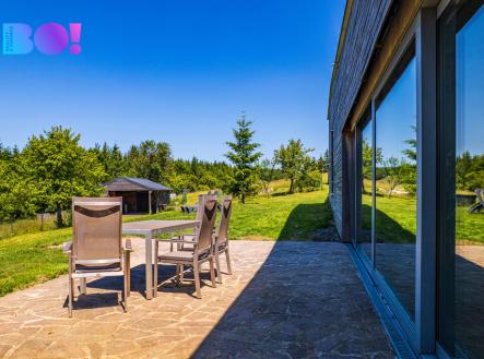 Toužíte po moderním domově uprostřed přírody, s naprostým soukromím a výhledy, které nikdy neomrzí? Právě pro vás je určena tato výjimečná nemovitost nacházející se v katastru obce Rajnochovice - na Trojáku, jednom z nejkrásnějších míst Hostýnských vrchů, nedaleko rozhledny Maruška a lyžařského areálu Troják. Rodinný dům o dispozici 6+kk je situován na rozsáhlém pozemku 6 428 m² s udržovanou zahradou, samostatnou garáží, dvěma zahradními domky a letní kuchyní. Samotná zastavěná plocha domu činí 275 m², navíc je k dispozici prostorná terasa o výměře 72 m² orientovaná na západ. Lokalita a dostupnost: Troják je místem, kde se setkávají tři okresy – Vsetín, Zlín a Kroměříž. Lokalita je známá nejen krásnou přírodou, ale i výbornou dostupností. Autem jste za: - 15 minut v Bystřici pod Hostýnem, - 25 minut ve Vsetíně, - 35 minut ve Zlíně, Všechna tato města nabízejí bohatou kompletní občanskou vybavenost. Nejbližší školka, škola, obchody, lékař a sportoviště se nacházejí v obci Hošťálková, vzdálené 5 km po asfaltové komunikaci. Přes Troják pravidelně jezdí autobusy, které zajišťují spojení ve všech směrech (Bystřice pod Hostýnem, Vsetím, Zlín), bez nutnosti vlastního vozu. Konstrukce a technologie: Tento dům vznikl jako pečlivě promyšlený projekt s důrazem na kvalitu, funkčnost a ekologii: Nosné zdivo: - Pálené bloky typu Porotherm, zateplení minerální vatou 15 cm, - monolitické stropy z betonu B25, základy z prostého betonu B20, - provětrávaná fasáda s dřevěným obkladem z severského modřínu, - zelená (vegetační) střecha, která skvěle izoluje a zapadá do krajiny, - hliníková okna s trojsklem – včetně velkoformátových francouzských oken v obytné části (hlavní portál s výhledem do krajiny má 8m na délku), - teplovodní podlahové vytápění, elektrokotel, - kvalitní kanadská krbová kamna, - příprava pro kotel na tuhá paliva, - vlastní studna, - domácí čistička odpadních vod. Dispozice: Dům nabízí velmi komfortní dispozici 6+kk – se zaměřením na otevřenost a propojení s exteriérem: - obývací pokoj s kuchyňským a jídelním koutem, téměř 70 m², - 4 ložnice, - pracovna s vlastním vstupem, - 2 koupelny s WC, - 2 technické místnosti, - velká terasa navazující na obytnou část. Každý detail interiéru je navržen s důrazem na světlo, jednoduchost a funkčnost. Dům je zároveň snadno udržovatelný, úsporný a připravený na celoroční užívání – jak pro trvalé bydlení, tak jako luxusní víkendová rekreace. Shrnutí: - výjimečná poloha v přírodě - elektrické žaluzie - centrální vysavač - přístup po asfaltové komunikaci udržované i v zimním období - vlastní studna (hloubka 76m) + čistička = soběstačnost - velký pozemek, garáž, 2 zahradní domky, letní kuchyň, přístřešek pro tři auta - krásné výhledy a naprosté soukromí - vhodné i jako investiční nemovitost (rekreace, pronájem) Podobné nemovitosti se na trhu objevují jen zřídka. Pokud Vás tedy zaujala, zavolejte mi a dohodneme termín prohlídky - tuto nemovitost je třeba vidět a zažít osobně na místě. Těšíme se na vás.