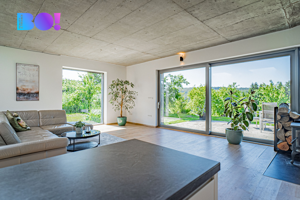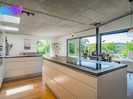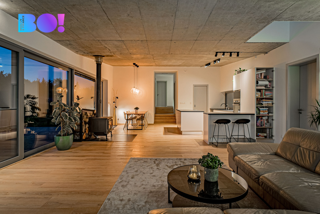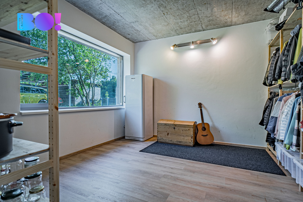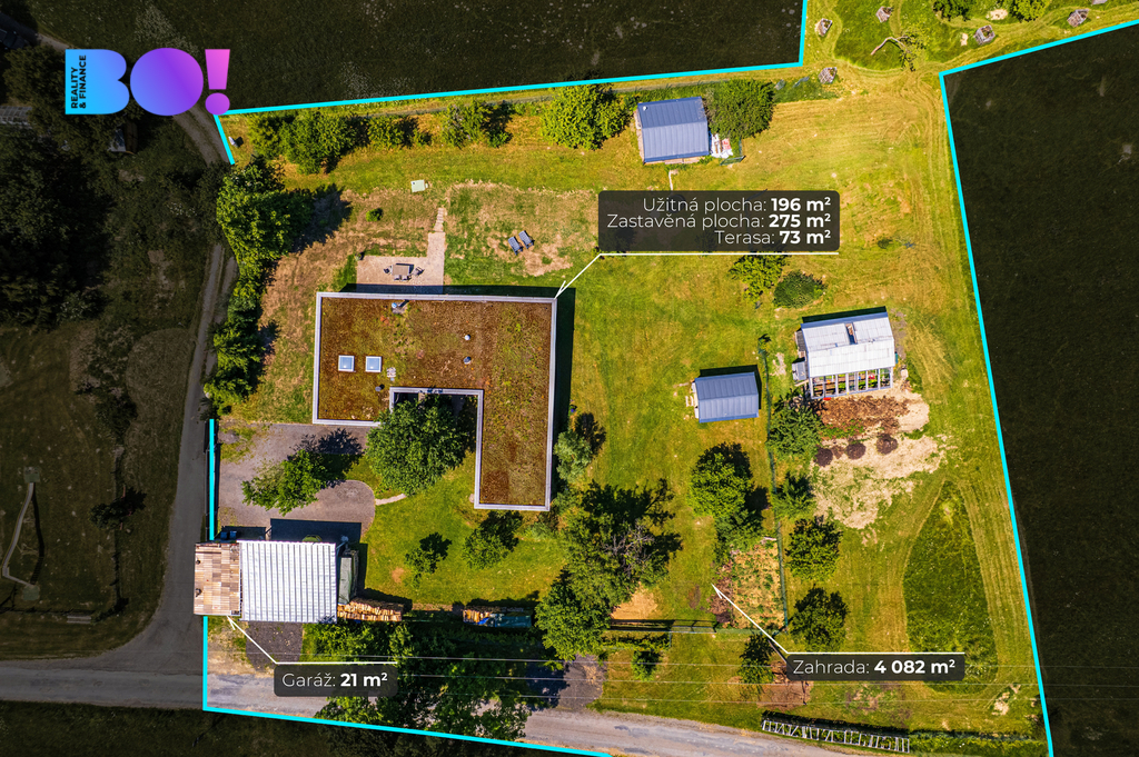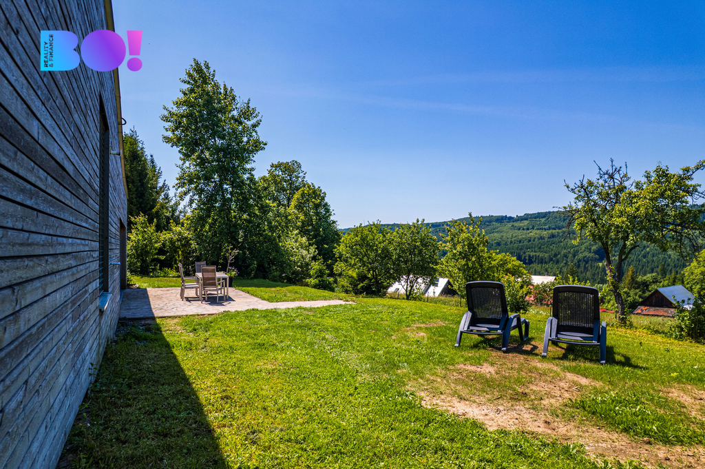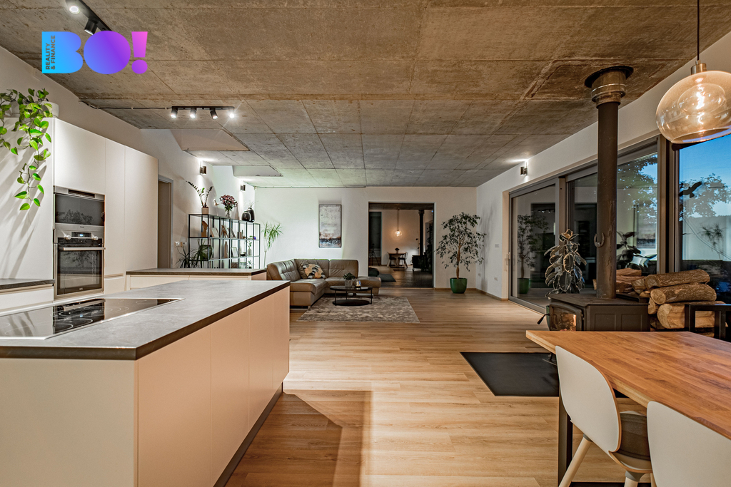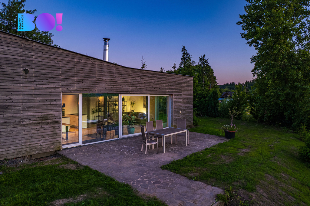 Toužíte po moderním domově uprostřed přírody, s naprostým soukromím a výhledy, které nikdy neomrzí? Právě pro vás je určena tato výjimečná nemovitost nacházející se v katastru obce Rajnochovice - na Trojáku, jednom z nejkrásnějších míst Hostýnských vrchů, nedaleko rozhledny Maruška a lyžařského areálu Troják. Rodinný dům o dispozici 6+kk je situován na rozsáhlém pozemku 6 428 m² s udržovanou zahradou, samostatnou garáží, dvěma zahradními domky a letní kuchyní. Samotná zastavěná plocha domu činí 275 m², navíc je k dispozici prostorná terasa o výměře 72 m² orientovaná na západ. Lokalita a dostupnost: Troják je místem, kde se setkávají tři okresy – Vsetín, Zlín a Kroměříž. Lokalita je známá nejen krásnou přírodou, ale i výbornou dostupností. Autem jste za: - 15 minut v Bystřici pod Hostýnem, - 25 minut ve Vsetíně, - 35 minut ve Zlíně, Všechna tato města nabízejí bohatou kompletní občanskou vybavenost. Nejbližší školka, škola, obchody, lékař a sportoviště se nacházejí v obci Hošťálková, vzdálené 5 km po asfaltové komunikaci. Přes Troják pravidelně jezdí autobusy, které zajišťují spojení ve všech směrech (Bystřice pod Hostýnem, Vsetím, Zlín), bez nutnosti vlastního vozu. Konstrukce a technologie: Tento dům vznikl jako pečlivě promyšlený projekt s důrazem na kvalitu, funkčnost a ekologii: Nosné zdivo: - Pálené bloky typu Porotherm, zateplení minerální vatou 15 cm, - monolitické stropy z betonu B25, základy z prostého betonu B20, - provětrávaná fasáda s dřevěným obkladem z severského modřínu, - zelená (vegetační) střecha, která skvěle izoluje a zapadá do krajiny, - hliníková okna s trojsklem – včetně velkoformátových francouzských oken v obytné části (hlavní portál s výhledem do krajiny má 8m na délku), - teplovodní podlahové vytápění, elektrokotel, - kvalitní kanadská krbová kamna, - příprava pro kotel na tuhá paliva, - vlastní studna, - domácí čistička odpadních vod. Dispozice: Dům nabízí velmi komfortní dispozici 6+kk – se zaměřením na otevřenost a propojení s exteriérem: - obývací pokoj s kuchyňským a jídelním koutem, téměř 70 m², - 4 ložnice, - pracovna s vlastním vstupem, - 2 koupelny s WC, - 2 technické místnosti, - velká terasa navazující na obytnou část. Každý detail interiéru je navržen s důrazem na světlo, jednoduchost a funkčnost. Dům je zároveň snadno udržovatelný, úsporný a připravený na celoroční užívání – jak pro trvalé bydlení, tak jako luxusní víkendová rekreace. Shrnutí: - výjimečná poloha v přírodě - elektrické žaluzie - centrální vysavač - přístup po asfaltové komunikaci udržované i v zimním období - vlastní studna (hloubka 76m) + čistička = soběstačnost - velký pozemek, garáž, 2 zahradní domky, letní kuchyň, přístřešek pro tři auta - krásné výhledy a naprosté soukromí - vhodné i jako investiční nemovitost (rekreace, pronájem) Podobné nemovitosti se na trhu objevují jen zřídka. Pokud Vás tedy zaujala, zavolejte mi a dohodneme termín prohlídky - tuto nemovitost je třeba vidět a zažít osobně na místě. Těšíme se na vás.