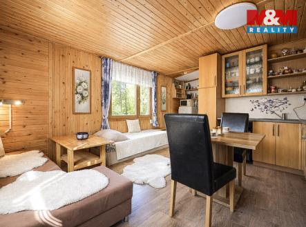 Hledáte místo pro odpočinek v přírodě s nádhernými výhledy? Právě pro vás nabízíme kouzelnou celodřevěnou chatu v obci Rapotín, jen pár minut od vyhlášených lázní ve Velkých Losinách. Chata je dřevostavba napojená na obecní vodovod i kanalizaci, což zajišťuje pohodlí i pro delší pobyty. Topení je zajištěno krbovými kamny. Dispozice nabízí tři místnosti – útulný obývací pokoj s kuchyňským koutem, verandu a v podkroví ložnici pro klidný spánek. Součástí je také koupelna se sprchovým koutem a WC. Velkým benefitem je zastřešená terasa s posezením, odkud si můžete vychutnat krásné výhledy do okolní přírody. Na pozemku najdete také kůlnu na nářadí, krb na grilování a udírnu – ideální pro chvíle s rodinou či přáteli. Parkování je pohodlně zajištěno přímo na pozemku u chaty. Na zahradě jsou ovocné stromy. Pokud hledáte místo pro relaxaci po pracovním vytížení, tak je právě tato chata pro vás. Zavolejte si o prohlídku.