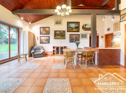 Místo, kde každé ráno i večer má svůj půvab - ať už je teplý letní den, podzimní déšť nebo zimní mráz. Tento rodinný dům spojuje pohodlí každodenního života s atmosférou klidu. Dominantním prostorem nemovitosti je velkorysý obývací pokoj s kuchyňským koutem, který se i díky krbu stává přirozeným centrem společného života. K opravdovému odpočinku přispívá také wellness zóna se saunou z cedrového dřeva, bazénem s protiproudem a sprchou. Bytovou část dále tvoří ložnice a rovněž komora, kterou lze přizpůsobit a proměnit v dětský pokoj. Dílna a druhá komora jsou přístupné samostatně, a to prostřednictvím vrat s elektrickým pohonem nebo dveřmi v zadní části domu. Až pro dvě auta je k dispozici kryté parkovací stání. Vytápění zajišťuje tepelné čerpadlo (systém země - voda) s podlahovým rozvodem tepla, přičemž v obývacím pokoji je možné využít i stylový krb. Na pozemku se nacházejí dvě vlastní vrtané studny, další variantou odběru pitné vody je veřejný vodovod, jehož přípojka je připravena na pozemku. Odpadní vody jsou odváděny do DČOV. Dům má kvalitní dřevěná EURO okna a exteriérové dveře, energeticky spadá do kategorie A. Pozemek o celkové výměře 1005 m² je osázen ovocnými a okrasnými dřevinami, což zajišťuje dostatek soukromí i příjemnou atmosféru. Součástí nabídky je i pronájem sousedního pozemku o velikosti 1026 m² s platnou nájemní smlouvou do roku 2026. Okolní příroda láká k procházkám, výletům i cykloturistice. Občanskou vybavenost zajišťují nedaleké Rataje nad Sázavou a Uhlířské Janovice. Nájezd na dálnici D1 je vzdálen 20 minut jízdy autem.