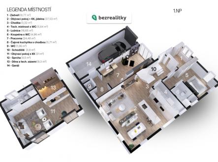 Objevte místo, kde má každý člen rodiny svůj koutek – a přitom jste všichni stále pohromadě. V klidné ulici v Řečanech nad Labem stojí dům, který myslí na rodinný život do detailu: prostorný dům 6+kk, vedlejší domek 1+kk a samostatná pracovna. Celkem 266 m² užitné plochy na pozemku 1 235 m² se zahradou 1 040 m² – jedna adresa a několik rolí: domov, zázemí pro děti i prarodiče, místo pro práci, hru i odpočinek. Ráno děti sbíhají po schodech do světlého obýváku s kuchyní a jídelnou, vy v zádveří odkládáte bundy a boty do vestavěných skříní. V kuchyni voní snídaně, za velkými francouzskými okny už je vidět terasa a zahrada, kam můžete kdykoli vyjít. Hlavní ložnice v přízemí je váš klidný úkryt s vlastní koupelnou se sprchovým koutem a WC. V patře je hala s vestavěnou skříní a čtyři ložnice – ideální pro děti, hosty, pracovnu či hernu. Ranní provoz zvládne velkorysá koupelna s vanou, dvěma umyvadly a WC. Z obýváku i ložnice vyjdete na zastřešenou terasu o 22 m², která je od jara do podzimu vaším druhým obývákem. Zahrada, navržená zahradním architektem, je hotový příběh: ovocné stromy a keře, plantáž jahod (cca 200 kusů), zvýšené záhony se zeleninou, jezírko, živý vrbový altán i zákoutí pro večerní posezení. Děti mají svůj svět – vrbový domek, hrací domeček, pískoviště, senzomotorický chodník, hmyzí domek i bylinkovou zahrádku. Zahrada je kompletně oplocená a ze tří stran krytá vzrostlými tújemi a habry. Součástí nemovitosti je vedlejší stavba o 59 m². Najdete v ní 1+kk (cca 35 m²) s vlastním vchodem ve fázi dokončování – sprchový kout, WC a příprava na kuchyňský kout. Ideální pro prarodiče, dospělé dítě, hosty nebo jako základ pro pronájem či podnikání. Zbytek tvoří dílna s technickým zázemím – prostor pro kutily, hobby i uskladnění všeho, co nechcete mít v hlavním domě. Dalším benefitem je pracovna/provozovna (32 m²) se samostatným vstupem, vlastní toaletou a „čajovou kuchyňkou“. Ráno stačí přejít pár kroků přes dvůr, zavřít dveře a máte klid na práci, v poledne jste během minuty zpět doma nebo na zahradě za dětmi. Propojení s garáží umožňuje pohodlný provoz menší firmy nebo ateliéru. Dům je komfortní a úsporný: PENB třída B – velmi úsporná, elektrické podlahové topení + infrapanely, obecní vodovod a kanalizace, centrální vysavač, wifi internet. K tomu velká garáž a dlážděné nádvoří pro dvě auta s bránou a vraty na dálkový pohon. Lokalita podporuje klidný rodinný režim. Školka, škola, hřiště, obchody, lékař, lékárna i pošta jsou v pěší vzdálenosti, vlak (trasa Praha – Pardubice – Brno/Ostrava) i autobus máte pár minut chůze, autem jste v Praze zhruba za hodinu a v okolních městech do půl hodiny. Labe, cyklostezky a lesy lákají k výletům, běhání i cyklovýpravám s dětmi. Pokud hledáte domov, kde se potká rodina, práce i zahrada plná života, je tohle místo, které stojí za to zažít osobně. Ozvěte se, rádi vám poskytneme další informace nebo zorganizujeme nezávaznou prohlídku – může to být první krok k tomu, aby se tento příběh stal i vaším. Tato nemovitost je určena výhradně přímým zájemcům o koupi. Na inzerát můžete také reagovat přímo na webu Bezrealitky: https://www.bezrealitky.cz/nemovitosti-byty-domy/969569-nabidka-prodej-domu-k-tisine-recany-nad-labem