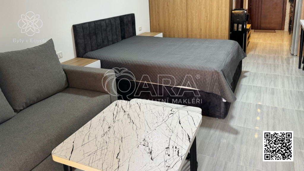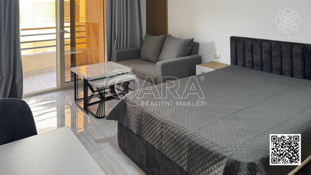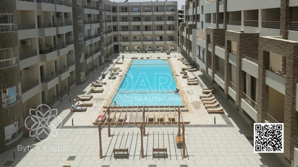 Mám pro Vás příležitost ke koupi plně vybaveného bytu o dispozici 1+kk s lodžií. Bytový projekt Al Hambra v Hurgádě nabízí bydlení na dobré adrese v dosahu všeho, co můžete k pohodlnému užívání nebo pronajímání bytu potřebovat. Nabízený byt má započtenou plochu 49 m2 (včetně podílu na společných prostorách, přibl. 20 % ze započtené plochy). Byt má dispozici 1+kk (hlavní obytný prostor s kuchyňským koutem, koupelna se sprchou a WC) s balkonem, ze kterého je krásný výhled na celý vnitroblok projektu Al Hambra s bazénem. Byt se nachází na 2. patře (třetím podlaží) čtyřpatrové budovy, orientaci má severozápadní. Byt je kompletně vybaven novým nábytkem a spotřebiči a připraven k okamžitému užívání. Rezidenční projekt Al Hambra 1st Avenue je situován v těsné blízkosti centra Hurgády, na ulici El Mamsha, která jednou z nejznámějších turistických oblastí v Hurgádě. Cesta z mezinárodního letiště trvá jen 5 minut. Lokalita je klidná, čistá a převážně s evropskou komunitou a bohatým zastoupením české komunity přímo v rezidenci Al Hambra a ve vedlejším projektu Princess. Rezort zahrnuje rezidenční budovy, velký bazén, zahradu, restaurace, fitness, obchody, butiky, služby, wellness, hypermarket, lékařskou kliniku a parkoviště. V budově bude k dispozici ostraha, recepce, hotelové služby a správa nemovitosti včetně služby pronajímání bytů. Samozřejmostí jsou výtahy ve všech budovách. S koupí bytu souvisí úhrada právních služeb v Egyptě. Majitelé bytů mají přístup na soukromou pláž vzdálenou 300 m od rezidence určenou pouze pro majitele bytů v rezortech developera. Užívání pláže je umožněno formou klubového členství s ročním předplatným nebo zvýhodněným denním vstupným. Prodejem nemovitosti mé služby nekončí. Svým klientům společně s mým týmem zajistíme právní servis, pomůžeme se zařizováním bytu, poskytneme praktické informace, pomůžeme s řešením pronajímání bytu. Na mých stránkách bytyvegypte najdete mnoho odpovědí na často kladené otázky a videa s užitečnými informacemi o koupi nemovitosti a životě v Egyptě. Pomohu Vám případně i s řešením hypotečního úvěru na koupi bytu v Egyptě (s podmínkou zastavení nemovitosti v ČR).