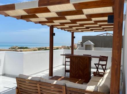 Sníte o místě, kde váš obývací pokoj nekončí zdí, ale nekonečným mořem a oblohou? Nabízíme k prodeji výjimečný střešní byt na pomezí nové Mamshy. Je to místo pro ty, kteří chtějí mít moře na dosah, ale po dni stráveném venku hledají naprostý klid, soukromí a relaxaci bez ruchu velkoměsta. TERASA, KTERÁ NEMÁ KONKURENCI Srdcem tohoto domova je velkorysý prostor pod širým nebem. Terasa o rozloze 62 m² je kompletně vybavena nábytkem z masivu a nabízí maximální komfort pro ranní kávu s výhledem k moři, grilování s přáteli nebo večerní posezení pod hvězdami. Je zde i dostatek prostoru pro budoucí instalaci vířivky. Díky přístupu z více pokojů tvoří terasa přirozené centrum bytu. Všechna okna jsou navíc opatřena nepropustnými fóliemi, které vám zajistí absolutní soukromí, což je u rodinného bydlení zásadní benefit. POCTIVÉ MATERIÁLY A VYBAVENÍ NA KLÍČ Tento byt není jen „naoko“ upravený – byl budován s důrazem na kvalitu. Čekají na vás nádherné podlahy a moderní nábytek z masivu, včetně plně vybavené kuchyně. Byt se prodává přesně tak, jak ho vidíte na fotografiích. Je kompletně zařízený, klimatizovaný a připravený k tomu, abyste si jen vybalili osobní věci a začali bydlet. STRATEGICKÁ LOKALITA PRO KLIDNÝ ŽIVOT Pomezí nové Mamshy nabízí to nejlepší z obou světů. Za necelých 7 minut chůze stojíte na pláži nebo u široké nabídky restaurací a obchodů, přesto jste v dostatečné vzdálenosti od nejhlučnějších turistických zón. Do centra Hurghady se dostanete za 15 minut taxíkem nebo místními spoji, které jezdí v pravidelných intervalech. Máte tak veškerou zábavu na dosah, ale domů se vracíte do ticha. NÍZKÉ NÁKLADY A JASNÁ CENA U nás hrajeme fér. Kupní cena je konečná a zahrnuje veškeré vybavení, naši provizi i kompletní právní a administrativní servis spojený s převodem vlastnictví. Žádná skrytá překvapení vás nečekají. PROFESIONÁLNÍ SERVIS A ČESKÁ KOMUNITA Stejně jako u našich ostatních nabídek se můžete spolehnout na plnou podporu v češtině a doložení čistého právního stavu. Pokud by vám tento byt z jakéhokoliv důvodu nevyhovoval, rádi pro vás v Hurghadě vyhledáme jinou nemovitost a zajistíme její vybavení podle vašich představ. Prohlídky jsou možné celoročně. Rádi vám ukážeme město z pohledu místních a v případě zájmu vás propojíme s ostatními Čechy, kterým jsme zde již pomohli najít druhý domov. Ti vám nejlépe potvrdí, jak se v této lokalitě skutečně žije. Těšíme se na setkání s vámi!