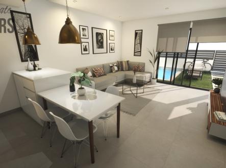 Objevte luxusní bydlení v Residencial Olivo Del Mar, exkluzivním komplexu luxusních vil v duplexovém stylu, který se nachází 4 min jízdy od písečných pláží Los Alcázares. K prodeji zbývá poslední vila. Hlavní vlastnosti nemovitosti: Vily jsou postaveny v duplexovém stylu se třemi ložnicemi a dvěma koupelnami, navržené v otevřeném konceptu, který zahrnuje plně vybavenou kuchyň a obývací pokoj s jídelnou. Každá vila má terasu v přízemí, prvním a druhém patře. Vily také disponují soukromým bazénem s venkovní sprchou a letní kuchyní na střešní terase. Vily jsou vybaveny vysoce kvalitními prvky, včetně kuchyní se všemi spotřebiči (lednice, sklokeramická varná deska, vyvýšená trouba, vestavěná mikrovlnná trouba, digestoř a integrovaná myčka nádobí), obloženými skříněmi se zásuvkami a koupelnami s umyvadlovými skříňkami, zrcadly s osvětlením a sprchovými zástěnami. Každá nemovitost má krytou garáž a je připravena pro instalaci klimatizace. Lokalita a okolí: Komplex se nachází v Los Alcázares, je obklopen službami a sportovišti a je vzdálen pouhých 30 minut jízdy od letiště v Murcii. Tato oblast je také rájem pro golfisty, jelikož se v blízkosti nachází několik hřišť, včetně Roda Golf, La Serena Golf a Mar Menor Golf. Plánované dokončení: 12/2026 K inzerované ceně je nutno připočítat 10% daň z nabytí nemovitosti (novostavba) a poplatky za notáře a zápis do katastru a další místní daně. Celkové extra náklady cca 13% z inzerované ceny.