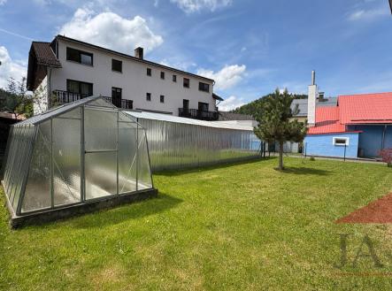 Exkluzivně vám nabízíme na prodej pěkný, čistý, podsklepený, kompletně zařízený a zateplený rodinný dům (4+1 s balkonem; 2 koupelny; velká garáž a sklady; podl. pl.: 146 m2; kolaudace 2017) s dvojitou plechovou garáží a oplocenou zahradou 464 m2 se skleníkem, stojící v klidné původní zástavbě mezi ulicemi Sušická a Kašperskohorská ve městě Rejštejn (568 m.n.m.), ležícího na zlatonosné řece Otavě na hranici CHKO a NP Šumava. Popis: suterén (73,2 m2): dlouhá garáž (lze parkovat i dvě auta), technická místnost (el. boiler, elektrokotel, umyv.), 3x sklep/sklad, chodba se schodištěm do přízemí (72,8 m2): veranda, hala se schodištěm, samostatné WC (topný žebřík), koupelna (sprchový kout, umyv. se zrcadlem, vývody na pračku, topný žebřík), kuchyně s jídelnou (kuch linka vč. vestavěných spotřebičů: horkovzdušná trouba, sklo-ker. deska, digestoř a myčka) a prostorný obývací pokoj (možnost krbu); podkroví (73,2 m2): podesta, velká koupelna (rohová vana, umyv. se zrcadlem, WC, topný žebřík), 3x ložnice a balkon s výhledem do zeleně; půda. Možnost odkoupení veškerého bytového nábytku (užívaného pouze 1 rok) za cenu dohodou. Pozemek celkem: 563 m2; Zastavěná plocha a nádvoří: 99 m2; Zahrada: 464 m2; Oplocená, udržovaná, zahrada s vjezdem, několika okrasnými keři, velkým skleníkem a dlouhou plechovou garáží. Podlahová plocha: 146 m2; Celkem užitná plocha: 219,2 m2; Vytápění: ÚT – nový elektrokotel s pokojovým termostatem; možnost instalace krbu v obytné části nebo automatického kotle na tuhá paliva (uhlí, dřevo, pelety….) díky komínu procházejícím až do suterénu. TUV: el. boiler; Voda a odpad: obecní řad; El.: 220/380 V; Ojedinělá příležitost koupě moderního vybaveného domu v turisticky zajímavé a žádané lokalitě na hranici NP Šumava v městečku Rejštejn (MÚ, SDH, restaurace, kostel, dětské hřiště, minigolf, možnost koupání a rybolovu v řece Otavě...), splňující kritéria na ideální celoroční rekreaci (výborný stav domu i vybavení; klidná lokace a umístění domu s orientací na jiho-západ; 2 koupelny, garáž) a hlavně krásná divoká Šumavská příroda všude kolem vás. Kašperské Hory 3,5 km. Srní 9 km. Sušice 13 km. Praha 150 km. Nyní dům užívají nájemníci s podanou výpovědí.
