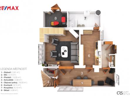 Nabízíme k prodeji částečně podsklepený rodinný dům o dispozici 3+1 s podlahovou plochou 94 m². K domu dále náleží terasa (9 m²) a sklep (22 m²). Dům se nachází na pozemku o výměře 422 m² v malebné obci Řeka, v srdci Beskyd. Byl postaven v roce 1958 a v roce 2015 prošel částečnou rekonstrukcí – vznikla nová kuchyň a koupelna, zrekonstruovalo se schodiště i interiérové dveře, vyměnila se elektřina do mědi, instalovaly se nové přímotopy a provedlo se zateplení střechy. Zároveň byla položena nová krytina a vyměněno zábradlí balkonu. Vytápění je řešeno lokálně na tuhá paliva a elektrickými přímotopy, ohřev vody zajišťuje elektrický bojler. Přípojka vody je vedena ze společné studny. K domu náleží zahrada se vzrostlými ovocnými stromy – najdete zde jabloně, švestky, rybíz i angrešt, které dotvářejí příjemnou atmosféru celého místa. Okolo domu vede stezka, díky čemuž je nemovitost ideální pro milovníky přírody, turistiky a aktivního odpočinku. Lokalita Řeka je vyhledávaná nejen k trvalému bydlení, ale také k rekreaci, protože nabízí klidné prostředí, čistý vzduch a široké možnosti sportovního i relaxačního vyžití v každém ročním období. Tento dům tak může sloužit jako útulné rodinné bydlení nebo rekreační chalupa v krásném prostředí Beskyd.