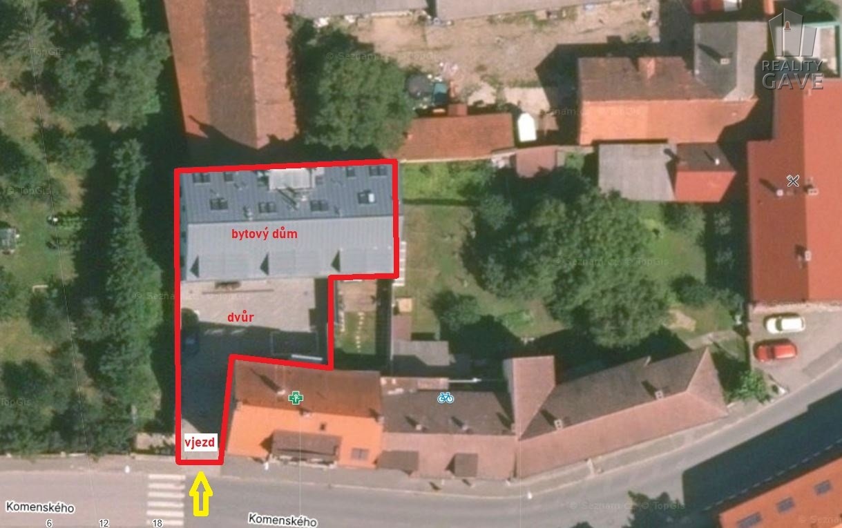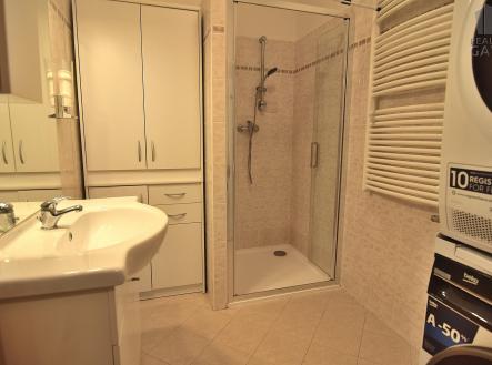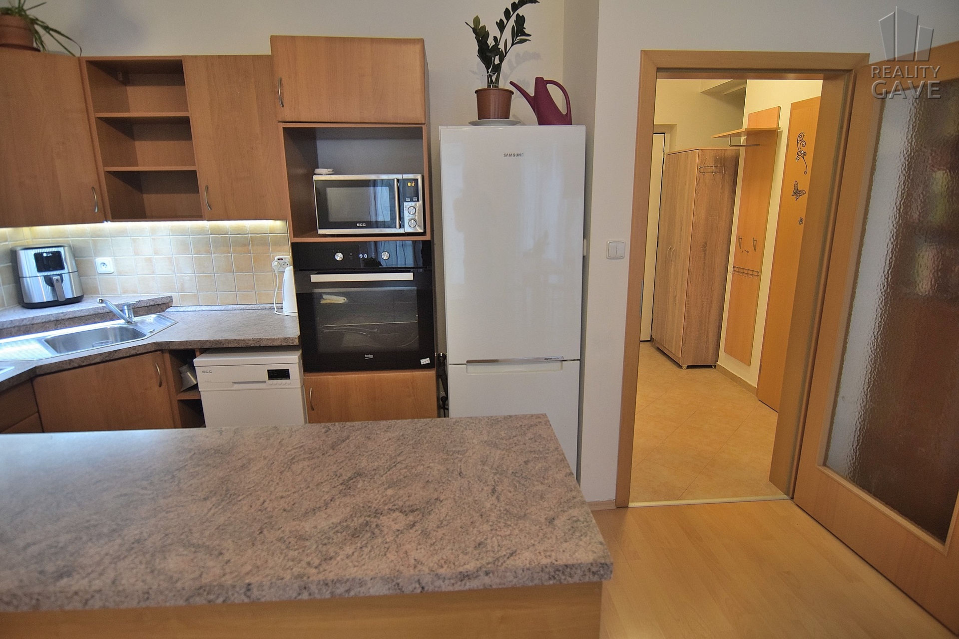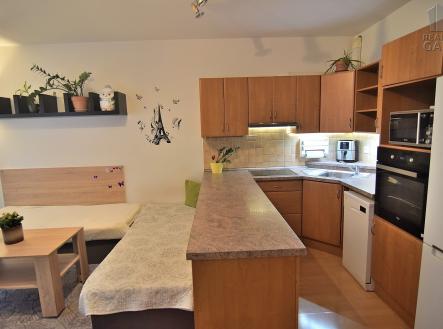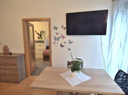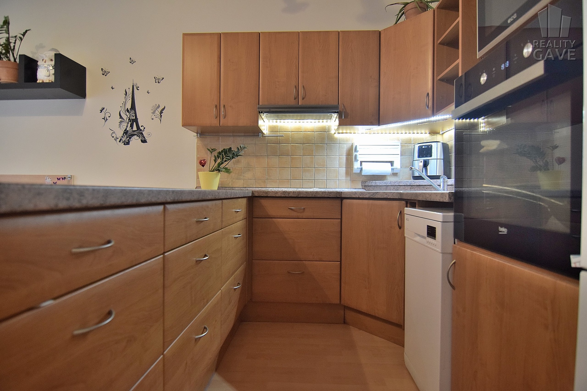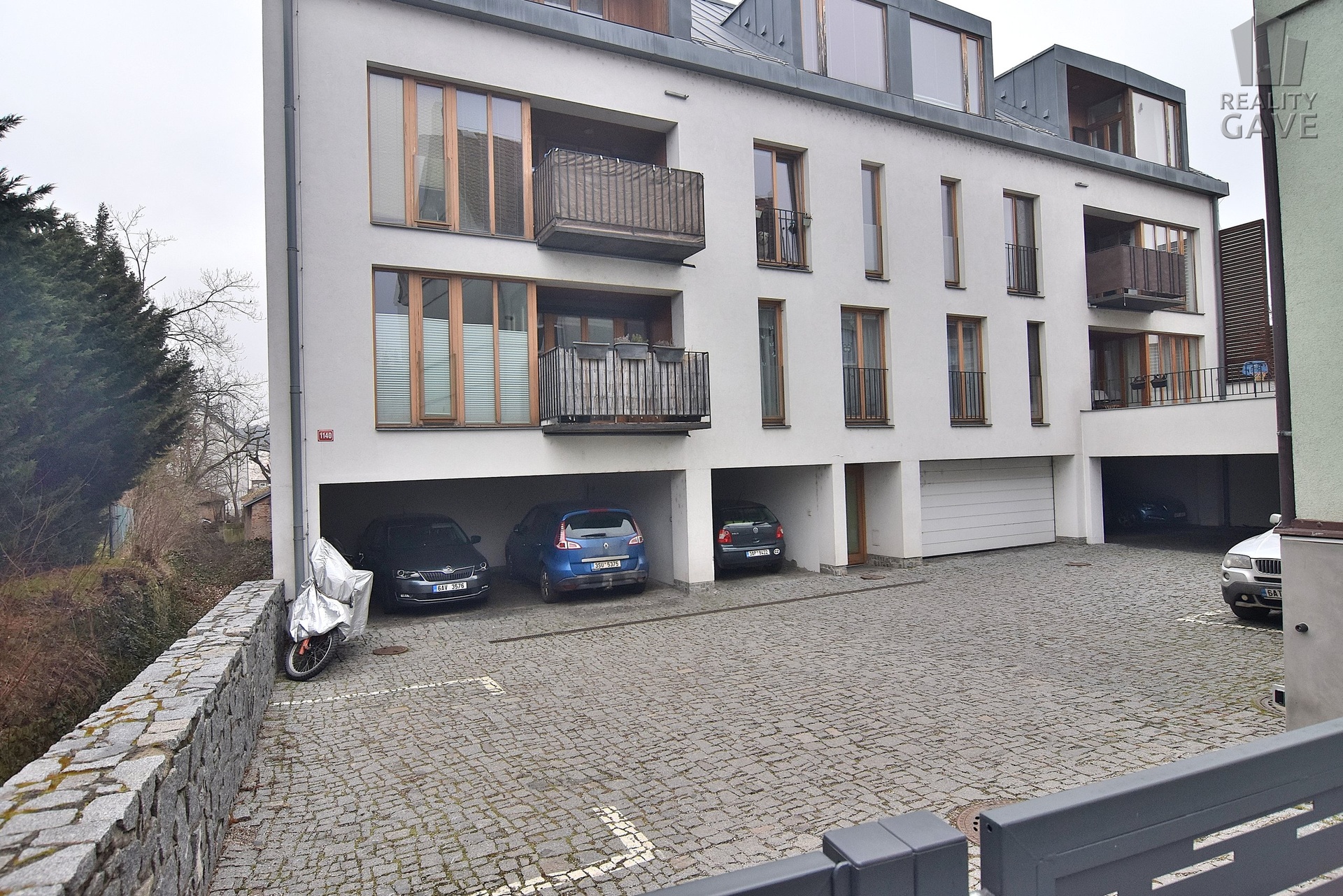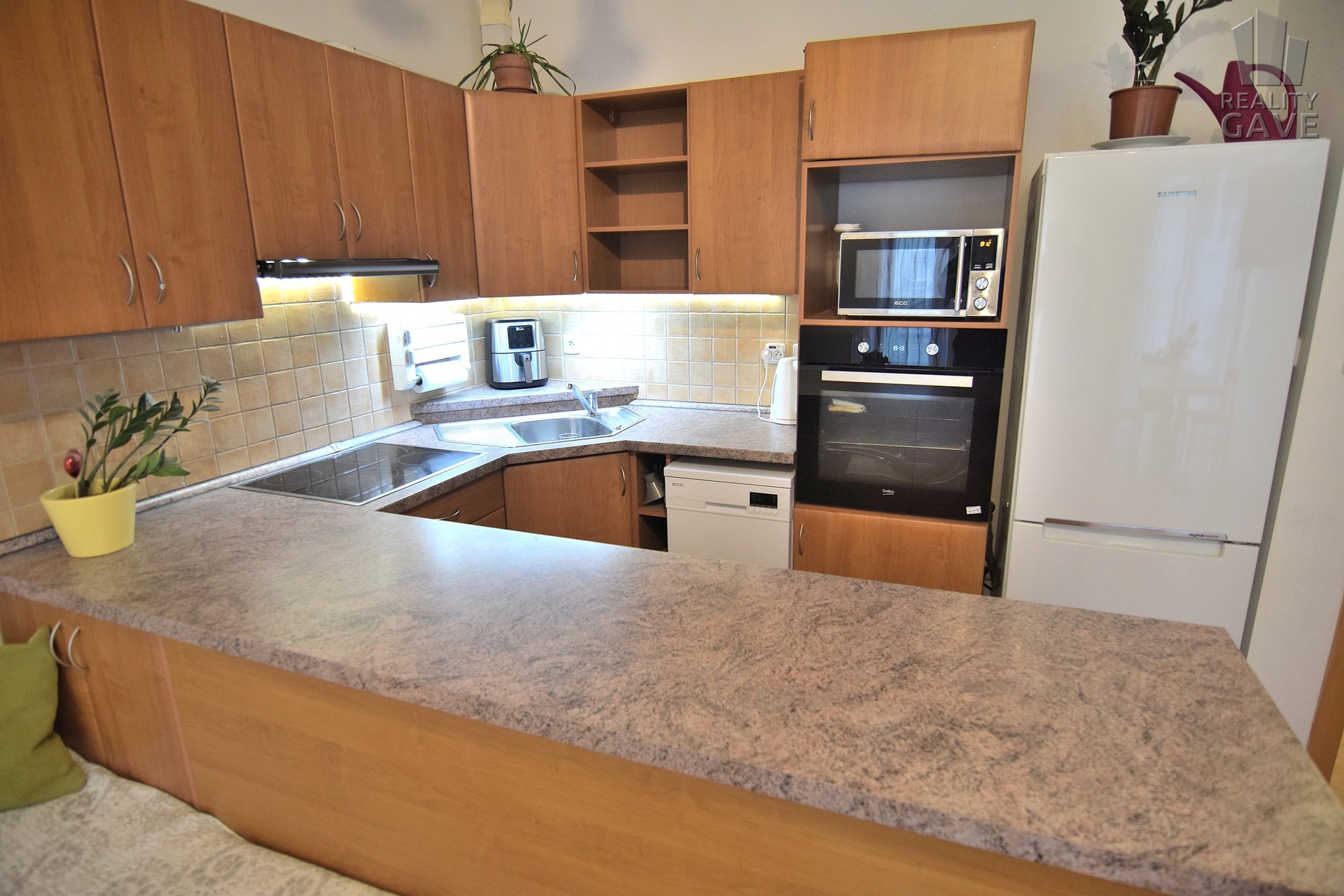 Exklusivně nabízíme byt v osobním vl., 2+kk, 55 m², umístěný ve 2. NP bytového domu o 4 podlažích. Bytový dům byl postaven v r. 2009 a jedná se o pěknou promyšlenou stavbu moderního komorního vzhledu, umístěnou v samém centru Řevnic. Stavba je postavena z porobetonových cihel se zateplenou fasádou pomoci EPS tepelné izolace. V domě se nachází 11 bytových jednotek různých velikostí, garážová stání pro 5 jednotek., sklepní kóje pro všechny b.j., kolárna a uzavřený dvůr. Do dvora je automatickou branou příjezd umožněn pouze vlastníkům bytů. Objekt je připojen ke všem inženýrským sítím. Každá bytová jednotka je vytápěna vlastním plynovým kotlem s nezávyslím měřením spotřeby plynu. Topení a příprava teplé vody probíhá v plynovém kotli Protherm se stacionárním 120 l. bojlerem zn. Dražice pod kotlem. Díky vysokým stadardům na kvalitu stavby a zateplení jsou výdaje na teplo a TUV na velmi přijatelné úrovni a současný majitel platí za spotřebu plynu pouze 1700,-Kč měsíčně. Další výdaje jako fond oprav, údržba domu, úklid, revize, opravy, společné prostory, osvětlení, pojištění, atd činí 2054,-Kč měsíčně. S platbou elektřiny se majitel dostává k celkové měsíční ceně za bydlení kolem 6 tis. Kč, včetně příjmu tv signálu a internetu. Interiér bytu je udržovaný a v dobrém stavu bez nutnosti nějaké zásadní a okamžité investice. Okna jsou euro dřevěná s izolačními dvojskly. Pozitivní je řešení rozdělení koupelny a toalety do dvou různých místností a velká šatna u ložnice. Kuchyňská linka má standardní vzhled i kvalitu a dostatek uložných prostor. Vybavena je sklokeramickou varnou deskou, digestoří s odtahem do komína, dále je zde vestavná trouba Beko, prostor pro mikrovlnku a volně stojící myčka. V přízemí domu jsou za uzavřenými dveřmi k dispozici prostorné a čisté sklepní koje (3,2 m2). Hlavní vchod se zamyká. Dům vypadá zvenčí moderně, úhledně a čistě. V přízemí domu lze využít kolárnu (zamyká se). Sousedské vztahy hodnotí majitel jako klidné, přátelské a bezproblémové. Úklid domu provádí pověřená osoba jednou týdně. V blízkém okolí je kompletní občanská vybavenost. Lékárna 20 m., náměstí 100 m., pošta, lékaři, COOP do 200 metrů od domu, ZŠ 300 m., ČD stanice 500 m.