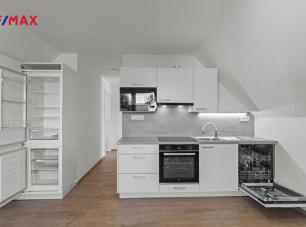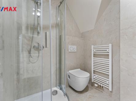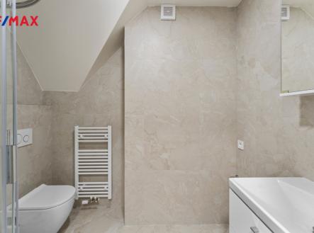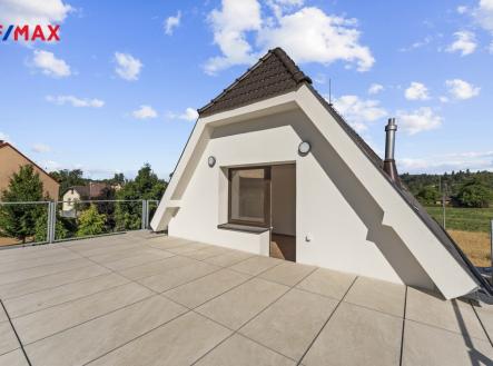 V Řevnicích, vyhledávané rezidenční oblasti nedaleko od jihozápadního okraje Prahy, v krásném údolí řeky Berounky, nabízíme nově zrekonstruovaný byt 3+kk s obrovskou terasou orientovanou do zahrady. Byt se samostatným vstupem se nachází v kompletně zrekonstruovaném domě se třemi dalšími jednotkami. Jedná se o podkrovní byt, který zabírá celé druhé podlaží budovy, má samostatný vstup přes schodiště na soukromé části pozemku, kde je pro tento byt připraveno parkování (za elektrickou bránou) a také prostor pro zahradní domek či uzamykatelnou skříň na kola či jiné vybavení. Dispozičně je byt řešen jako 3+kk. Obývací pokoj je vybaven kuchyní značky Oresi, která je včetně spotřebičů součástí prodeje. Dále zde najdeme dvě ložnice, z nichž jedna disponuje šatnou a vstupem na obrovskou terasu s výhledem do zahrady. Další společná větší šatna je přístupná z chodby. Koupelna je vybavena sprchovým koutem a toaletou. O vytápění celého domu se stará nový kvalitní plynový kotel, topení je ovládáno přes termostat, každý byt má samostatná měřidla na spotřebu všech médií. Kotelna je jediným vnitřním společným prostorem, který je sdílen s ostatními obyvateli domu. Řevnice jsou oblíbenou lokalitou, pár desítek metrů od domu vede cyklostezka kolem Berounky od Prahy přes Karlštejn do Berouna. V místě je k dispozici škola, školka, spousta obchodů a dalších služeb. Z nedalekého nádraží jezdí vlak do Prahy na hlavní a Smíchovské nádraží ve špičce každých 15 minut, autem je to na Smíchov/Anděl cca 30 minut.