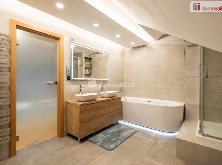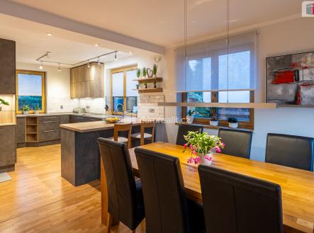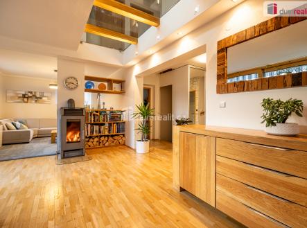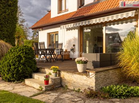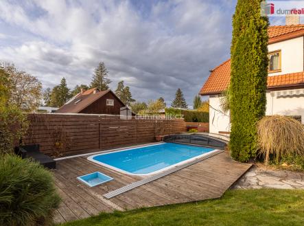 Naše společnost Vám zprostředkuje prodej krásné vily o dispozici 6+kk v nádherné části Říčan, v ulici Jedlová nedaleko lesa. Dům procházel od roku 2012 kompletní rekonstrukcí, jejímž výsledkem je moderní, velmi útulný a nápaditý interiér, který poskytuje bohatý prostor pro rodinu. Zajímavé prvky, jako prosklená podlaha v patře, nebo dominantní hala, na kterou navazuje venkovní dřevěná terasa s bazénem, podtrhují úžasnou atmosféru této nemovitosti. V přízemí domu je obývací prostor, členěný na obývací část, halu s krbovými kamny a jídelna na kterou navazuje kuchyňský kout s moderní kuchyňskou linkou. Dále je v přízemí pracovna (slouží i jako pokoj pro hosty), předsíň, koupelna s WC a vstup do sklepa. Celá stěna v části, kde je hala, je prosklená (HS portál), kterým lze vyjít na venkovní dřevěnou terasu (modřín) a zahradu. V patře jsou čtyři ložnice, koupelna s WC, velká šatna (má parametry menšího pokoje) a dále prostorná chodba, skoro bych jí také nazvala halou (zde je zajímavostí designová skleněná pochozí podlaha, skrze kterou je vidět do spodní části obývacího prostoru, haly). Dům je částečně podsklepený. Sklepní prostory slouží jako sklad a vinotéka. Okrasná rovinatá zahrada je naprostou oázou. Dům je umístěn v zahradě, mimo hlavní příjezdovou cestu, díky čemuž uniká pozornosti kolemjdoucích a zajišťuje tak naprosté soukromí. Přelivový bazén se slanou vodou potěší v letních měsících a vzrostlé stromy pak nabídnou příjemné klima a stín v horkých dnech. U domu je garáž. Říčany jsou pro svou polohu, veškerou občanskou vybavenost a dostatek zeleně vyhledávaným místem pro život. Pokud máte zájem o prohlídku této mimořádné nemovitosti, neváhejte mne kontaktovat. Ev. číslo: 653250.