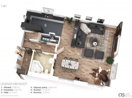 Ve výhradním zastoupení majitele nabízíme k prodeji moderní rodinný dům s vlastní zahradou, situovaný v klidné části Říčan – na dosah přírody i města. Dům s dispozicí 5+kk a celkovou užitnou plochou 154 m² je dvoupodlažní, nepodsklepený a postavený z kvalitních broušených cihel Porotherm. Při stavbě byl kladen důraz na kvalitu použitých materiálů a provedených prací jak v exteriéru, tak interiéru Dispozice: • Přízemí: vstupní hala, chodba se schodištěm, koupelna s WC a vanou, prostorný obývací pokoj propojený s jídelnou a kuchyňským koutem. Součástí kuchyně je praktická spíž. • Patro: hlavní ložnice, dva dětské pokoje, pokoj pro hosty/pracovna a koupelna s WC, (místo pro pračku a sušičku). K domu náleží garáž pro jedno vozidlo. Vybavení a pozemek: • Kompletní napojení IS, Voda, kanalizace, plyn, el. • Plastová okna s venkovními roletami v přízemí a vnitřními žaluziemi v patře. • Zahrada 341 m² s prostornou terasou a výsuvnou markýzou, přístupnou z obývacího pokoje francouzskými okny. Ideální prostor pro rodinné posezení i relaxaci. Lokalita: Říčany dlouhodobě patří mezi nejlepší místa pro život v ČR. Nabízí plnou občanskou vybavenost, výborné vlakové spojení do Prahy i přímé napojení na Pražský okruh, D1 a D5. Okolí poskytuje mnoho možností pro volnočasové aktivity, procházky i sport. Díky exkluzivním podmínkám u finančních institucí Vám rádi zajistíme nejvhodnější financování a pomůžeme s veškerou administrativou. Nepropásněte tuto příležitost a přijďte se přesvědčit o kouzlu tohoto domu osobně!