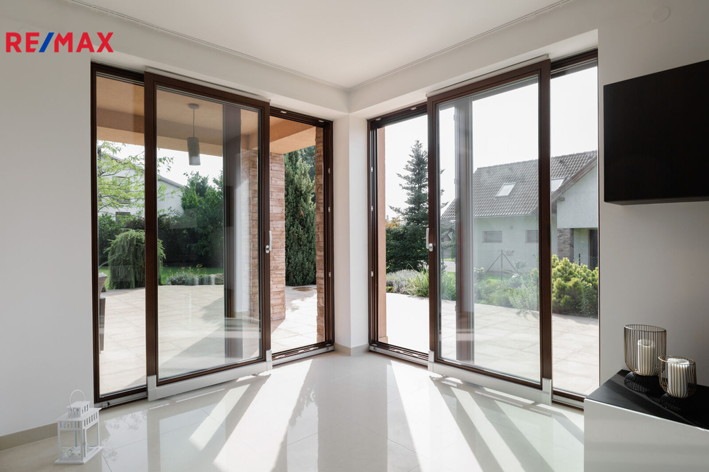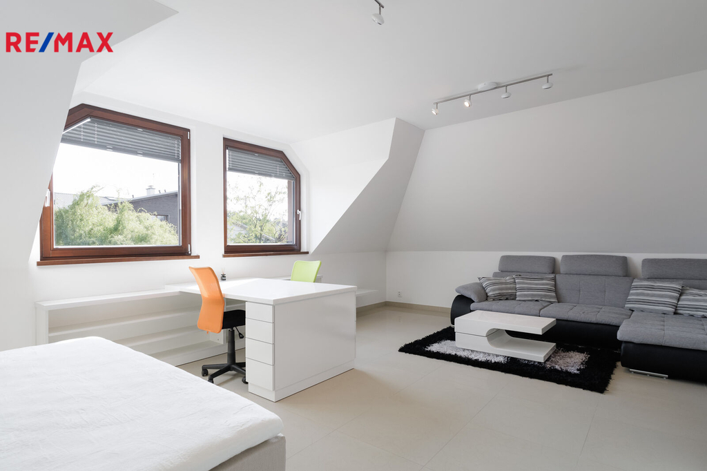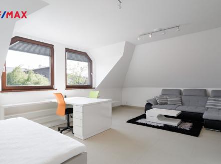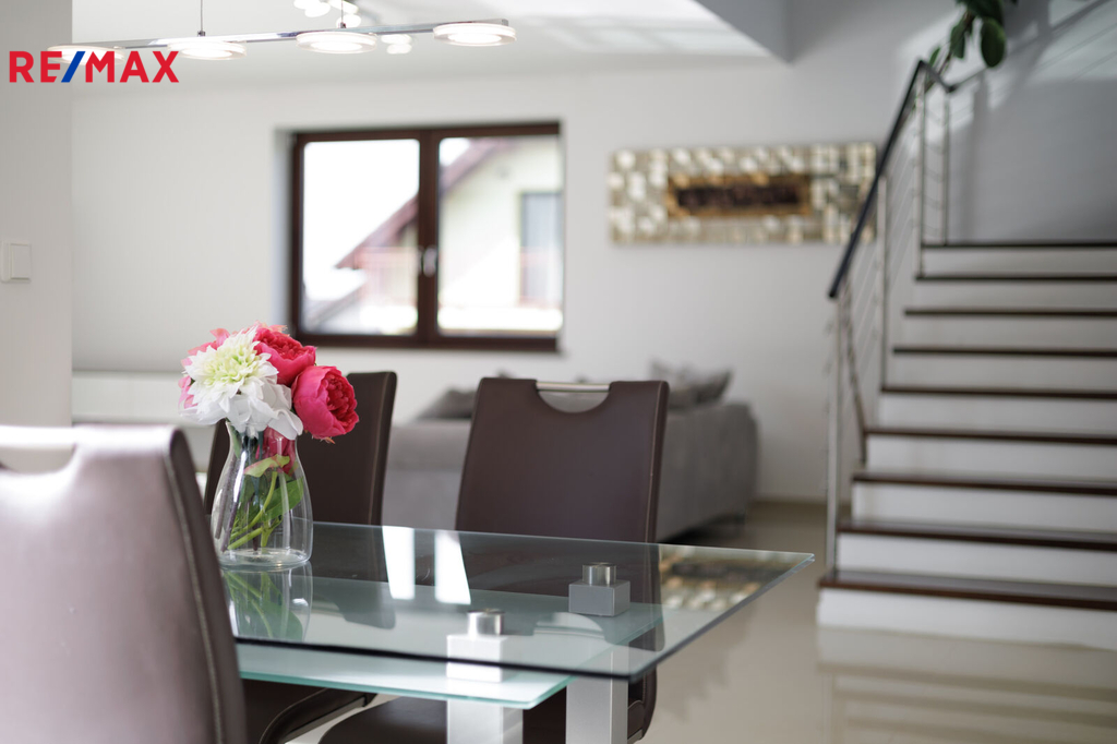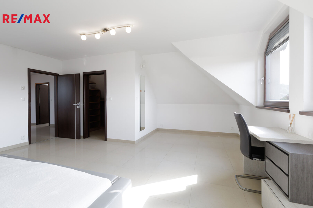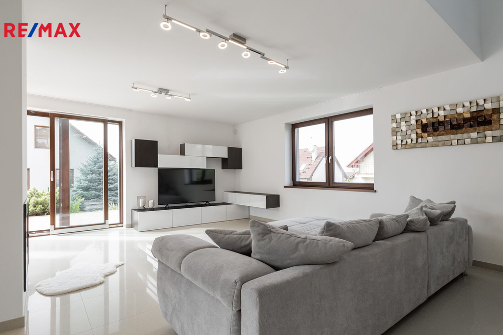 Nabízíme k prodeji velmi pěkný a prostorný rodinný dům v klidné lokalitě obce Strašín u Říčan. Přízemí: Dominantou celého domu je jeho přízemí. Kuchyň, která je do posledního detailu navržena nábytkem na míru zn. Sykora. Vestavěné spotřebiče zn. Miele jsou samozřejmostí, stejně jako zabudovaný kávovar. Ženy jistě ocení špajz, který ke kuchyni patří. K přízemí patří obývací pokoj s na míru vyrobenou obývací stěnou. Plynový krbe, Vás v chladnějších měsících nejen zahřeje, ale působí v celém prostoru skvěle. Velkou výhodou obývacího pokoje a kuchyně je vstup na terasu, kde můžete u venkovního grilu s komínem posedět s přáteli nebo rodinou, a něco dobrého připravit. Jako pokoj pro hosty nebo pracovna byl vymyšlen prostor, který se nachází u vstupu do domu. Součástí pokoje je šatna. Přízemí disponuje koupelnou se sprchovým koutem a WC. V technické místnosti najdete vše potřebné pro běžný chod domu. 1.Patro: Při stoupání do prvního patra se nám nabídne prostorná chodba se vstupy do 3 ložnic, z nichž jedna z nich lze rozdělit na dva samostatné pokoje. Součástí každé ložnice je šatna s úložným prostorem. V prvním patře najdeme další koupelnu, tentokrát s vanou i se sprchovým koutem, dále pak samostatné WC. Celý dům má podlahové vytápění, venkovní elektrické rolety a vnitřní rolety. Zahrada u domu je udržovaná pravidelně zahradníkem. Na zahradě je umístěn zavlažovací systém trávníku s nádrží na dešťovou vodu. Okna jsou dřevěná trojskla. Venkovní i garážová vrata jsou na elektrický pohon. Lokalita obce Strašín je vyhledávanou lokalitou. Nabízí vše potřebné pro běžný život. Pokud se Vám tento dům líbí, napište mi a velmi ráda Vás domem provedu.