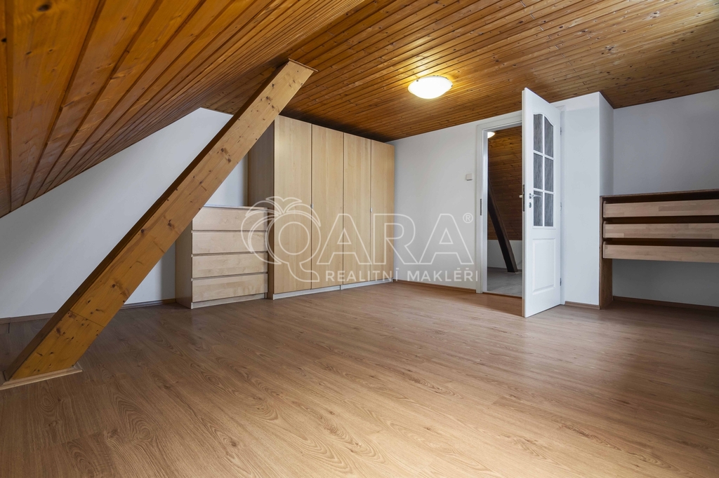 K pronájmu nabízíme rodinný dům o dispozici 5+kk v klidné části obce Jažlovice u Říčan. Dispozičně dům nabízí čtyři samostatné pokoje a prostorný obývací pokoj s kuchyňským koutem, který je přirozeným srdcem celého domu. Interiér je světlý a vzdušný díky velkým oknům s výhledem do zeleně a okolní přírody. V obývacím pokoji jsou kamna na dřevo, která dotvářejí atmosféru domova a zároveň slouží jako praktický lokální doplněk vytápění. Vytápění celého domu i ohřev teplé vody zajišťuje plynový kotel. Přízemí domu: vstupní chodba, obývací pokoj s kuchyňským koutem, dva pokoje, koupelna s vanou, samostatné WC. Patro: dvě samostatné ložnice. Součástí pronájmu je zahrada o velikosti cca 150–200 m², ideální pro rodinné posezení, dětské hry, pěstování zeleniny nebo relax po práci. Parkování je možné přímo před domem, bez nutnosti řešit modré zóny či vzdálené parkování. Jažlovice u Říčan patří mezi oblíbené lokality pro rodinné bydlení. Nabízejí klid, zeleň a soukromí, přitom s velmi dobrou dostupností do Prahy. Ideální volba pro rodinu, která chce bydlet v domě, ale nechce se vzdát městského komfortu. V případě zájmu zašlu plánky pro lepší představu o dispozičním rozložení, a samozřejmě ráda zajistím prohlídku.