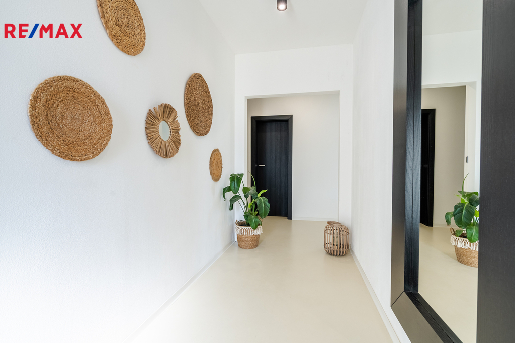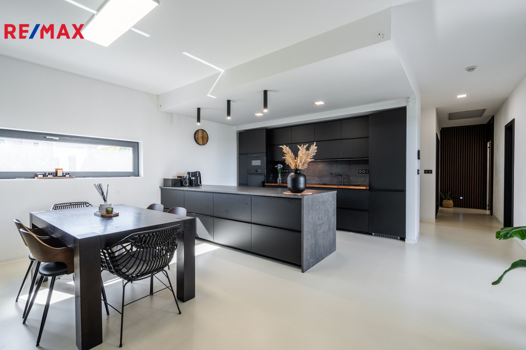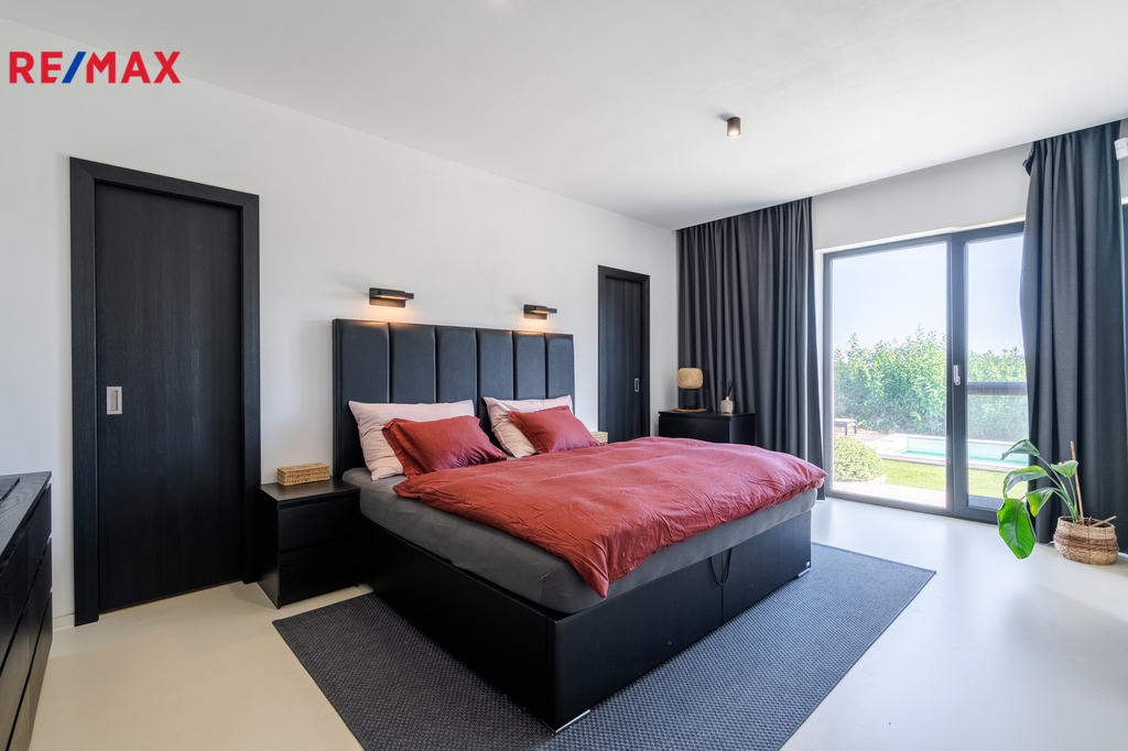 Moderní bydlení v klidné lokalitě s výbornou dostupností Představujeme moderní a prostorný rodinný dům 5+kk, kolaudovaný v roce 2020, na pozemku 1 102 m² v obci Říčky u Brna. Oblíbená lokalita spojuje klid a blízkost přírody s rychlou dostupností do Brna – na Campus Bohunice dojedete autem za 12 minut, stejně snadné je i napojení na D1 směrem Brno/Praha. Promyšlená dispozice 5+kk Dominantou domu je světlý obývací pokoj s kuchyní a jídelnou, odkud vedou velkoformátové posuvné dveře na krytou terasu. K dispozici jsou čtyři samostatné pokoje, dvě koupelny (jedna en-suite u ložnice), dvě toalety, dvě šatny u ložnice a další u vstupu, komora, technická místnost a garáž. Na pozemku jsou navíc tři parkovací místa a velký půdní prostor (cca 100 m²) pro úložné potřeby. Součástí domu je zastřešená pergola s terasou 50 m², ideální pro rodinné posezení. Nadstandardní vybavení a technologie Fotovoltaická elektrárna (24 panelů Solax) – úsporný provoz, energetická třída B Wallbox pro nabíjení elektromobilu Podlahové teplovodní vytápění v celém domě Bazén 3 × 7 m s tepelným čerpadlem a WPC terasou Inteligentní zabezpečení Jablotron + kamery Hikvision, ovládání přes mobil Dálkově ovládaná brána, branka i garážová vrata Extra vysoké stropy (2,75 m) a vysoké dveře Tupai Luxusní koupelny Grohe a Hansgrohe, systémy Geberit Vestavěné spotřebiče Bosch a Gorenje Okna s trojskly (U = 0,6), elektrické žaluzie a sítě proti hmyzu Bio krb, designová elektroinstalace ABB NEO, chytré osvětlení se senzory Retenční nádrž 12 m³ pro zalévání zahrady Dům je bezpečný, energeticky úsporný a pohodlně se ovládá na dálku. Zahrada – soukromá oáza Pečlivě upravená zahrada plná zeleně nabízí klid i zábavu: bazén s terasou, venkovní ohniště a zákoutí pro odpočinek s rodinou i přáteli. Vysoké živé ploty a promyšlená výsadba zaručují maximální soukromí a pohodu od jara do podzimu. Kompletní občanská vybavenost V Říčkách najdete obchod, školu, školku, lékaře, lékárnu i služby. V okolí jsou rybníky, přírodní biotop a cyklostezky. Blízké Brno nabízí veškeré zázemí města, kulturu i pracovní příležitosti. Pro informace a sjednání prohlídky nemovitosti mě prosím kontaktujte e-mailem. Ozvu se vám. Děkuji za pochopení.