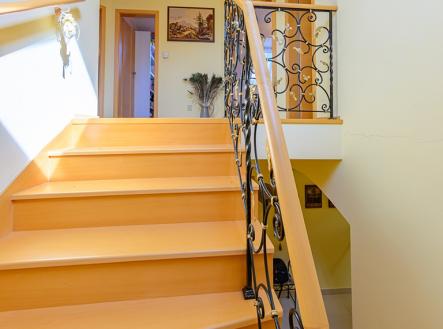 Nabízíme výhradně k prodeji rodinný dům v obci Římov, okres České Budějovice, situovaný v tiché ulici Strahovská. Jedná se o samostatně stojící cihlovou stavbu se dvěma podlažími, která svým novějším provedením uspokojí i náročného klienta. Nemovitost disponuje šesti pokoji, což ji činí ideální pro rodinné bydlení. Její zastavěná plocha činí 133 m². Součástí pozemku je rozsáhlá zahrada o ploše 1.037 m², celková plocha parcely včetně stavby tedy činí 1.188 m². Dům je ve velmi dobrém stavu a vyznačuje se moderním vybavením, které zahrnuje kompletní kuchyňskou linku s veškerými spotřebiči, plovoucí podlahy a dlažby. Vytápění je zajištěno podlahovým systémem s regulací teploty, k dispozici jsou také holandské radiátory. Objekt je napojen na vodovod a má připojení na kanalizaci. Elektřina je dostupná v napětí 230/400 V. Interiér domu je rozdělen do tří podlaží: 1/ Přízemí zahrnuje závětří, hala, obývací pokoj s krbem, kuchyň s jídelnou, spíž, sklad, schodiště, WC, zahradní místnost/studená kuchyně/sklad. 2/ Obytné podkroví se skládá ze schodiště, chodby, koupelny (vana, sprchový kout), 3x pokoj, balkon, samostatné WC, šatna. (dále možnost využití pochozí půdy, vysouvací žebříkové schody). Okolo domu je kompletně oplocená, udržovaná zahrada s terasou a množstvím plodících a okrasných stromů a keřů, možnost vjezdu na pozemek a dálkově ovládaná vrata. Dům je dále vybaven zabezpečovacím zařízením, videotelefonem, klimatizací, internetem. Od střešních oken VELUX po masivní dveře a obložky Sapeli, každý detail byl pečlivě promyšlen. Obvodové zdi POROTRHERM 40 cm + zatepleno. Možnost výstavby větší garáže, dílny, atd. ….. Nemovitost se nachází v nezátopové oblasti s pohodlným spojením na České Budějovice a Velešín. V Římově je školka, škola, obchod, sportoviště, obecní úřad, pošta, restaurace a další ….. sjezd na novou dálnici do obou směrů ve vzdálenosti pouhých 3 km. Prodej zahrnuje veškeré spotřebiče a částečné vybavení. Cena je včetně právních služeb a provize RK. HYPO pomůžeme zajistit. Nemovitost je v dobré kondici – možnost převzetí a nastěhování ihned. Velmi výhodná cena - můžeme doporučit. V případě zájmu o prohlídku nás neváhejte kontaktovat.