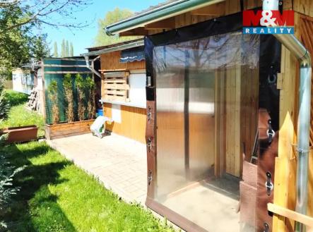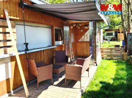 Prodej, karavan s dřevěnou přístavbou, Hradec u Kadaně