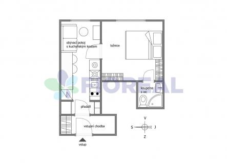 Pronájem moderního zrekonstruovaného bytu 2+kk (30 m2) s balkónem (2 m2)