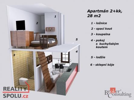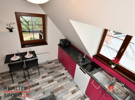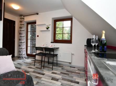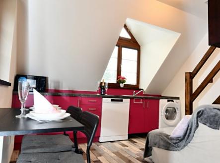 Útulný vybavený horský apartmán v blízkosti přírody s balkonem a vlastním parkovacím stáním Milujete aktivní pobyt v horách v zimě i v létě? Pak pro Vás mám kompletně vybavený mezonetový apartmán v úžasném místě Rokytnice nad Jizerou, v blízkosti Huťského vodopádu, navíc s bazénem, grilem a hřištěm na společné zahradě, Svou velikostí je pro rekreační pobyt dostačující, díky kompletnímu vybavení a nábytku na míru je zde vše připraveno ke spokojené rekreaci Vás či Vašich hostů, a to až pro 5 osob. Ve spodní místnosti je kuchyňská linka s varnou deskou, myčkou, lednicí, mikrovlnnou troubou a místem pro pračku či sušičku, jídelní kout, menší předsíňka a rozkládací pohovka pro případné návštěvy. Posedět můžete i na balkoně s výhledem do přírody. Koupelna je také velmi šikovně řešená se sprchou, wc, umyvadlem a otopným žebříkem. V patře je dostatek prostoru pro pohodlné spaní na dvoulůžku a úložné nízké skříňky, výklenek s matrací ocení především děti. Auto zaparkujete na vlastním parkovacím stání, lyže a ostatní sportovní vybavení si uložíte do vlastní zděné sklepní kóje či do společné lyžárny a kolárny s vysoušeči, do 3. patra vyjedete výtahem. K dispozici máte velký pozemek okolo domu se soukromým posezením, grilem, ohništěm, dětským hřištěm a letním venkovním bazénem. Vytápění centrálním kotlem na dřevěné pelety, záložní na el. energii, voda vlastní ze studny, jedná se o možnosti připojení na vodovod. SVJ funguje výborně, stejně i správcovská firma, která se stará jak o dům, tak se může postarat i o Váš nový apartmán, včetně případného obsazování. V blízkosti jsou sjezdovky vhodné pro rodiny s dětmi a zastávka skibusu a cyklobusu, kterým se dostanete do dalších lyžařských areálů případně na Zlaté návrší. Z areálu Horní Domky se dvěma lanovkami a mnoha vleky lze dojet na lyžích až k domu. V dojezdové vzdálenosti je Studenov a mnoho skiareálů v okolí (Paseky, Harrachov, Kořenov, Rejdice …), případně vzdálenější Špindlerův Mlýn. V Liberci s aquaparkem jste do hodiny, v Praze cca za hodinu a půl. Rokytnice je oblíbená nejen sjezdovými lyžaři, jsou zde i upravované běžecké tratě, vhodné terény pro skialpy, v létě pro cyklisty a v neposlední řadě si krásnou okolní přírodu užívají i pěší turisté. Najdete tu i sportovní halu s tenisovými kurty a tělocvičnami, kuželnu, saunu, naučné stezky … Doporučujeme občas zavítat do blízké výborné hotelové restaurace, koktejlového baru, případně do jiných oblíbených místních hospůdek. Menší obchod je v docházkové vzdálenosti, větší supermarket je na Dolním náměstí. V obci jsou potraviny, restaurace, pošta,, škola, školka, lidová škola umění, sportovní oddíly, knihovna, banky, autobusová doprava … S výběrem vhodného financování Vám rádi pomohou a poradí naši zkušení kolegové, případně za Vás k Vaší spokojenosti vše vyřídí. Přijďte se podívat, zda Vám apartmán svou dispozicí a výhodným umístěním může vyhovovat. Těšíme se na Vás, při osobní prohlídce Vám vše ukážeme a zodpovíme Vaše případné dotazy