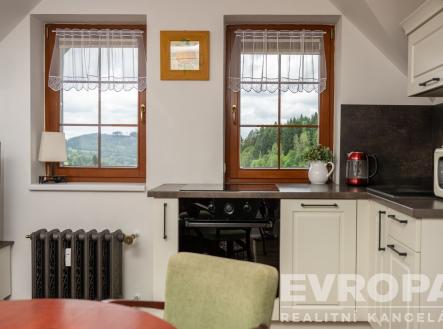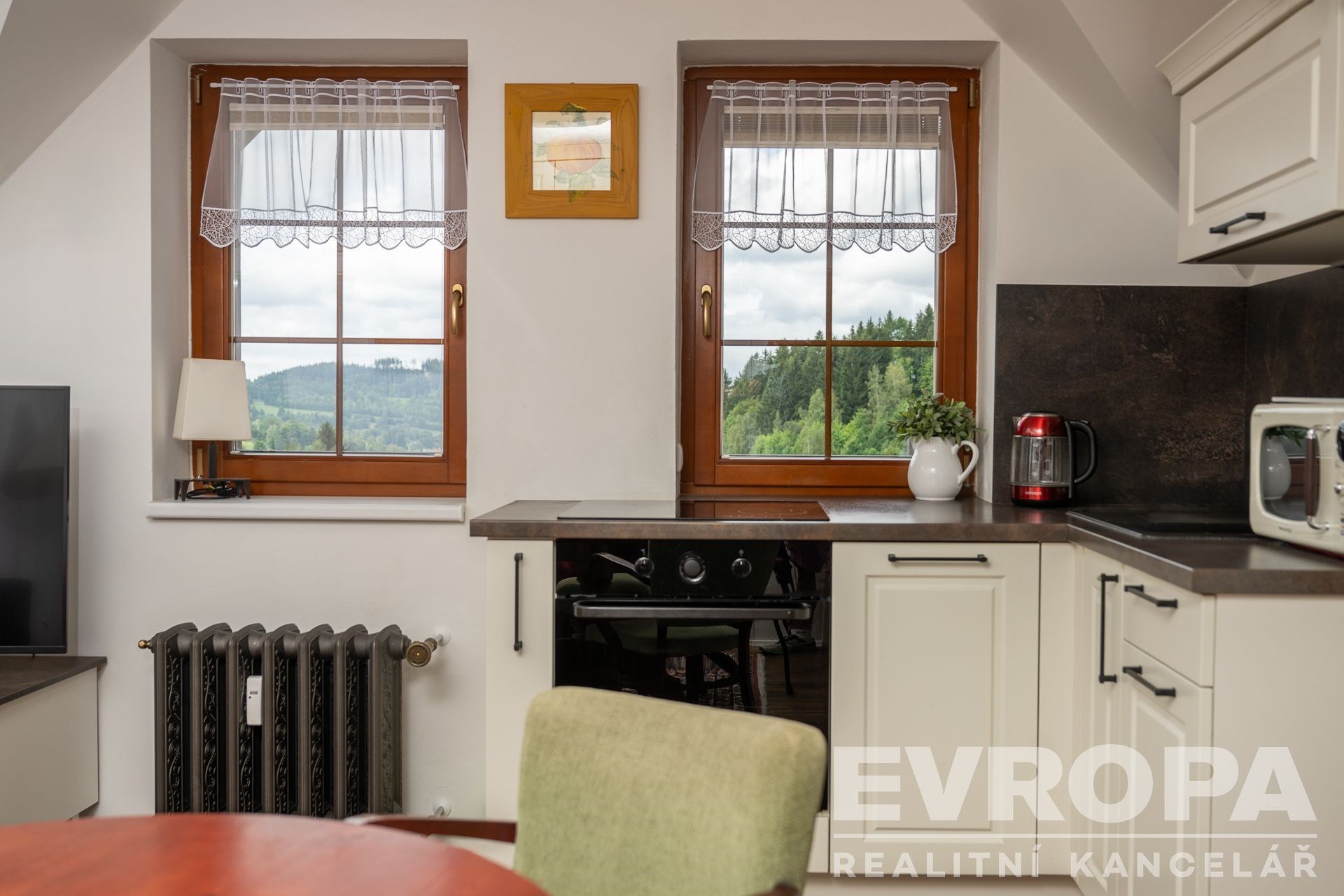Horský byt 2kk 63m2, plus místnost 1kk, terasa, v přírodě, výhled do údolí, apartmán na horách, dvě