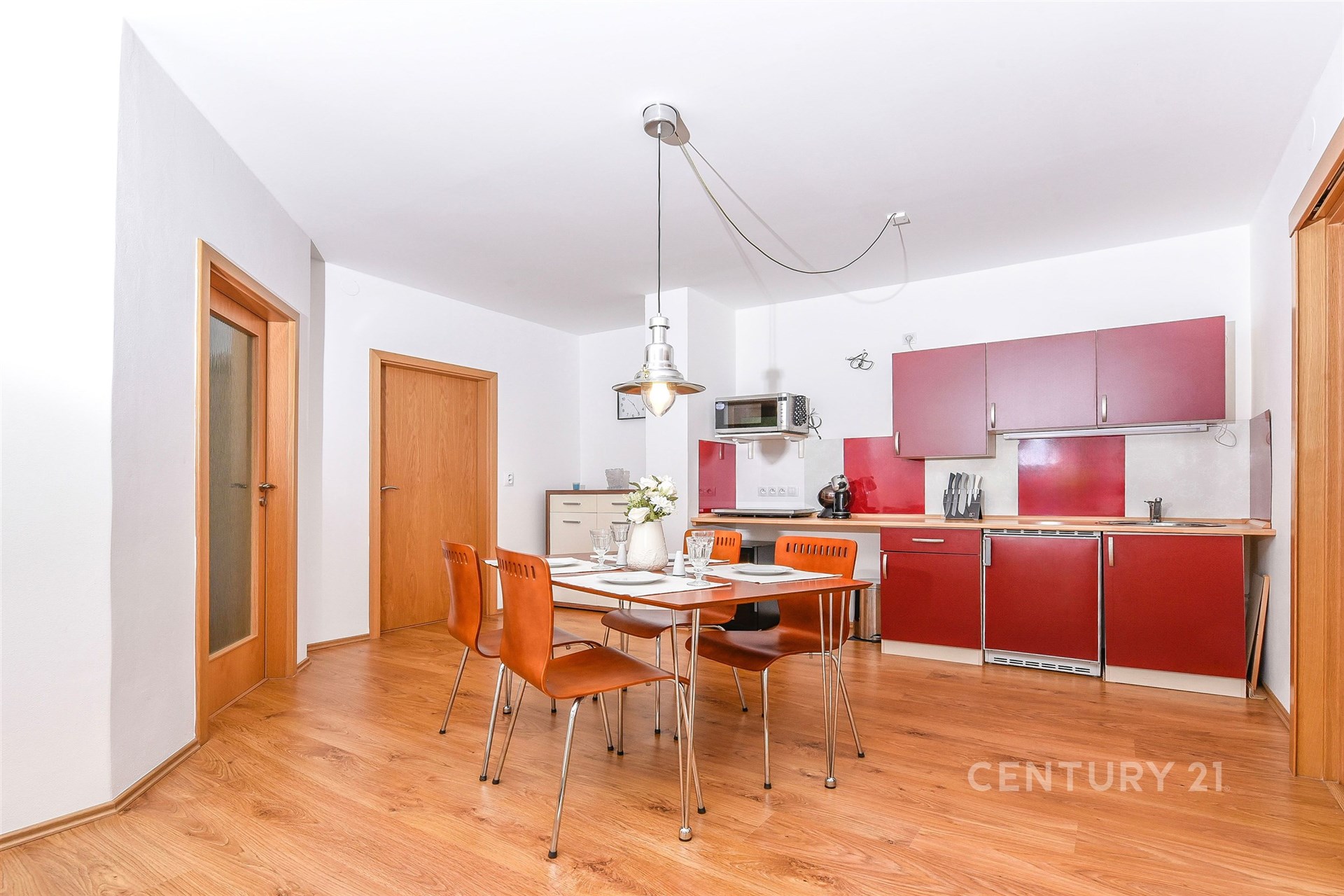 Představujeme Vám příležitost ke koupi velmi atraktivního, investičního apartmánu v osobním vlastnictví situovaného v malebném prostředí Rokytnice nad Jizerou v srdci Krkonoš. Byt se nachází v prvním patře moderního pětipodlažního bytového domu z roku 2008 v klidné části obce Horní Rokytnice, avšak v pohodlném dosahu centra města. Tento efektivně řešený apartmán o dispozici 2+kk s orientací na jih nabízí celkovou užitnou plochu 66 m², z čehož podlahová plocha činí 47 m². Promyšlené uspořádání zahrnuje: • Obývací pokoj s kuchyňským koutem (23 m²): Prostorný a světlý obývací pokoj s orientací na jich disponuje kuchyňským koutem s moderní linkou s indukční varnou deskou, dřezem, lednicí, mikrovlnnou troubou, kávovarem a vinotékou. Vybavení bytu je součástí prodeje. • Ložnice (13,5 m²) je taktéž s orientací na jižní stranu. • Koupelna s wellness (7,5 m²): Nadstandardně prostorná koupelna je vybavena sprchovým koutem, toaletou a jako bonus i vlastní saunou, která je taktéž součástí prodeje a nabízí dokonalou relaxaci v pohodlí domova. • Vstupní část (3 m²): Praktické zádveří s chodbou a vestavěnou skříní. • Komora (5 m²): Komora se nachází v přízemí domu a je ideální pro uskladnění sportovního vybavení či sezóních věcí. • Garážové stání (14 m²): Součástí bytové jednotky je taktéž garážové stání. Veškeré vybavení obývacího pokoje, ložnice a již zmíněná sauna jsou již zahrnuty v ceně. Byt je vytápěn vlastním plynovým kotlem, který zajišťuje i ohřev teplé vody. Napojení na městský vodovod a obecní kanalizaci je samozřejmostí. Lokalita – klidné bydlení s výhodami centra Bytový dům je situován v klidné lokalitě na severním svahu, na okraji venkovské zástavby. Nachází se pouhých 300 metrů od Dolního náměstí, které je turistickým a společenským centrem města. Zde naleznete veškerou občanskou vybavenost: Radnici, Supermarket Tesco Expres, Základní školu, Autobusovou zastávku, Bankomat, SKIBUS na sjezdovku cca 250m od apartmánu. Příjemné kavárny a rozmanité obchody, Kulturní dům je v bezprostřední blízkosti. Díky této strategické poloze si můžete užívat klidného bydlení s přírodou na dosah, aniž byste byli ochuzeni o komfort a služby, které město nabízí. Výborná je i dopravní dostupnost do dalších krkonošských středisek – Harrachov je vzdálen 15 minut jízdy autem, Vrchlabí 30 minut a Tanvald 25 minut. Ideální volba pro život nebo rekreaci. Tento byt představuje skvělou koupi, ať už hledáte trvalé bydlení v krásném horském prostředí, nebo investiční apartmán pro celoroční rodinnou rekreaci, případně investici s potenciálem dalšího pronájmu. Rokytnice nad Jizerou je vyhlášeným centrem zimních i letních sportů a nabízí nepřeberné množství aktivit pro všechny věkové kategorie. V případě zájmu o financování prostřednictvím úvěru na bydlení vám rádi a profesionálně pomůžeme. Pro více informací a sjednání termínu prohlídky neváhejte kontaktovat makléře. Těšíme se na vaši návštěvu!