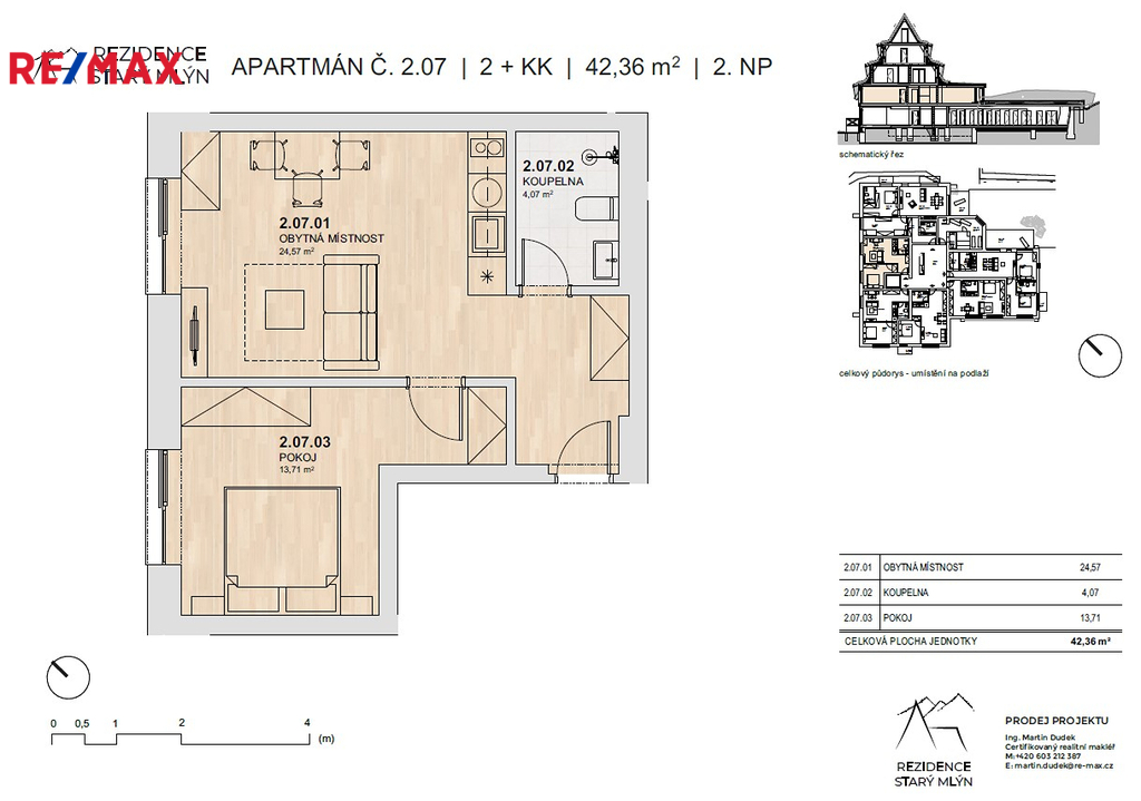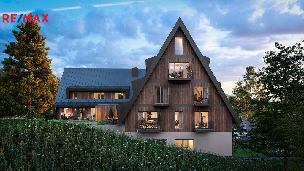 Rezidence Starý Mlýn nabízí exkluzivní horské apartmány v krásném a klidném prostředí Rokytnice nad Jizerou. Rezidence nabízí 19 moderních jednotek o dispozicích 1KK až 3KK s možností výběru balkonů či teras umožňující bezprostřední propojení s okolní krajinou a úchvatnými výhledy na panoramata hor. Naše apartmány nabízí styl, kvalitu a komfort s využitím moderních technologií. Ke každému apartmánu náleží vlastní uzamykatelná kolárna-lyžárna a parkovací stání. Komplex nabízí společné wellness (rezervační smart systém privátní sauny). Samozřejmostí je výtah. Prezentovaný apartmán č. 7 o dispozici 2+KK se nachází v prvním patře (2 NP) a disponuje celkovou podlahovou plochou 42,3 m². K jednotce náleží náleží privátní uzamykatelná kolárna + lyžárna (2,5m2), parkovací stání a možnost využívat společného wellness. Cena za apartmán je uváděna včetně parkovacího stání (v hodnotě 400tis Kč) a DPH s možností odpočtu ve výši 21%. Aktuálně nabízíme voucher na kuchyňskou linku v hodnotě 100 tis Kč. Stavba byla již zahájena a plánované dokončení je v počátku roku 2027. Lyžařské areály jsou dosažitelné během několika minut, turistické a cyklotrasy začínající přímo před vašim apartmánem. Dostupnost z Prahy je cca 1,5 hodiny a z Liberce je cca 1hodinu. Celoroční provoz zajišťuje stálý výnos i maximální využitelnost pro vás nebo vaše hosty. V případě potřeby zajistíme také profesionální financování nákupu nemovitosti. Pro více informací a domluvení prohlídky mě kdykoliv kontaktujte.